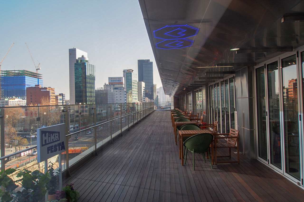 청계천이 내려다보이는 옥외 테라스