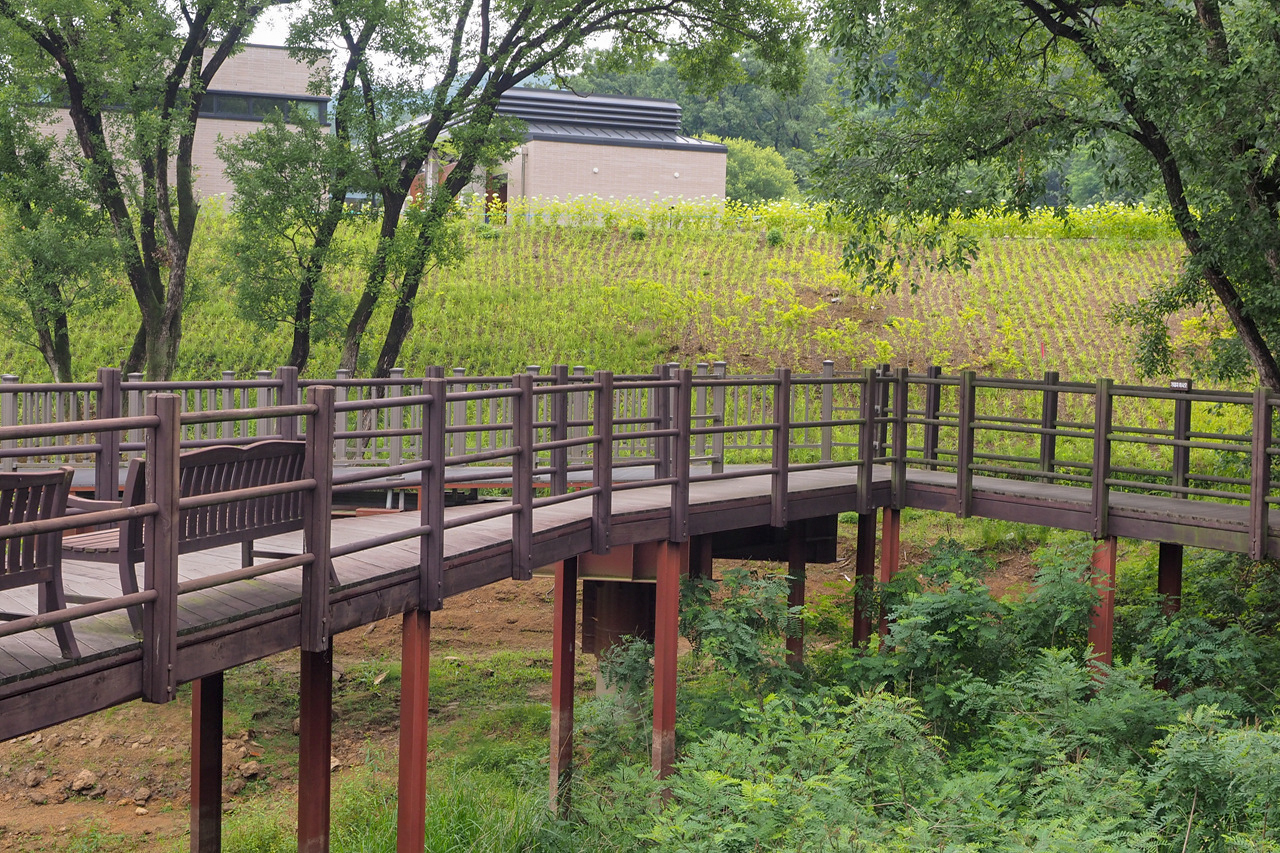 안성 금광호 둘레길 옆에있고, 데크길로 되어있다.