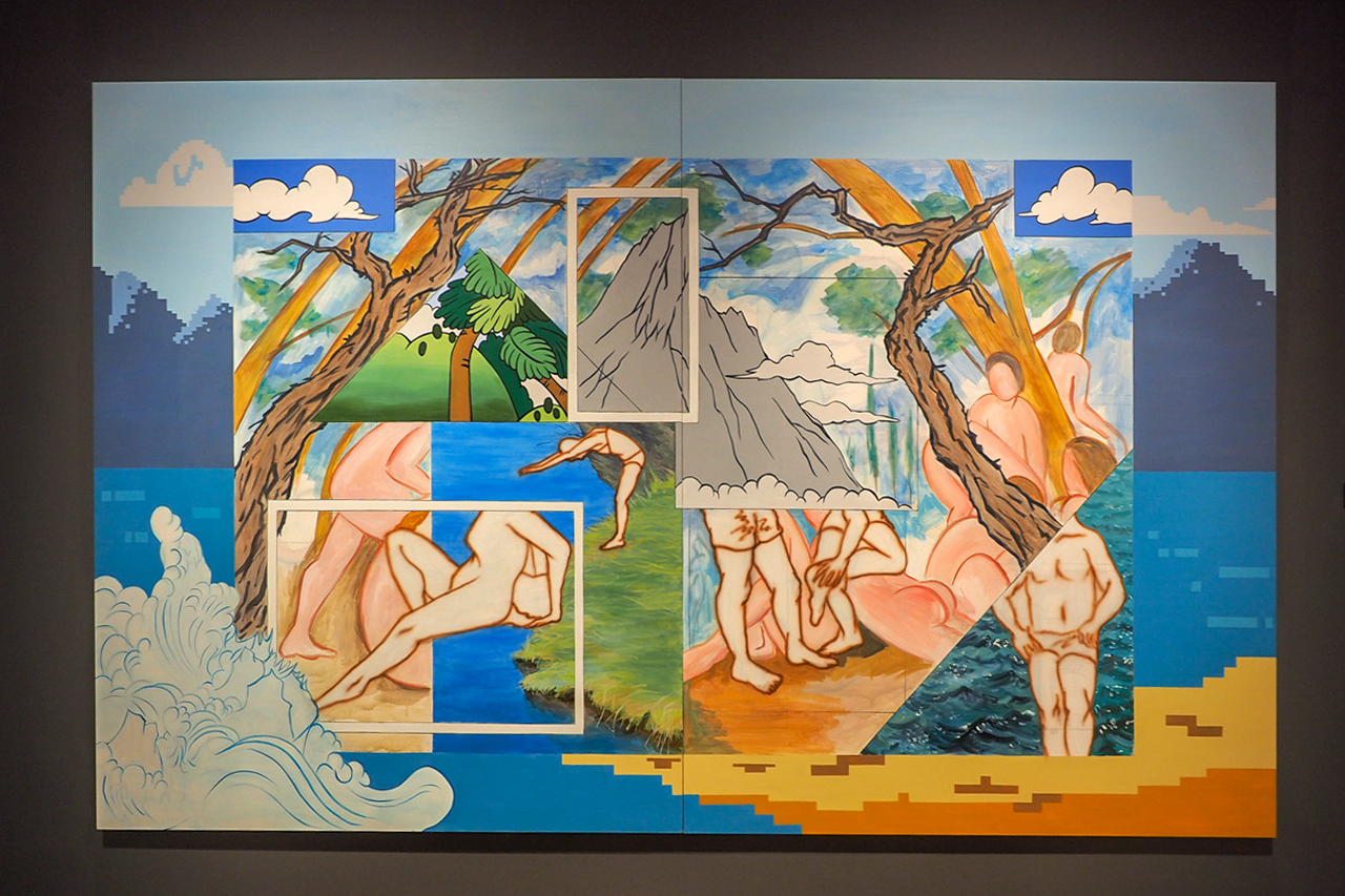윤미류 작가는 인물을 풍경에 배치하고 이를 카메라로 촬영해 회화에 담았다. Hunter Eyes 1’, ‘The Spiral’,‘It Flows’, ‘Brushing Off 1’ 등 8점 작품을 전시했다.