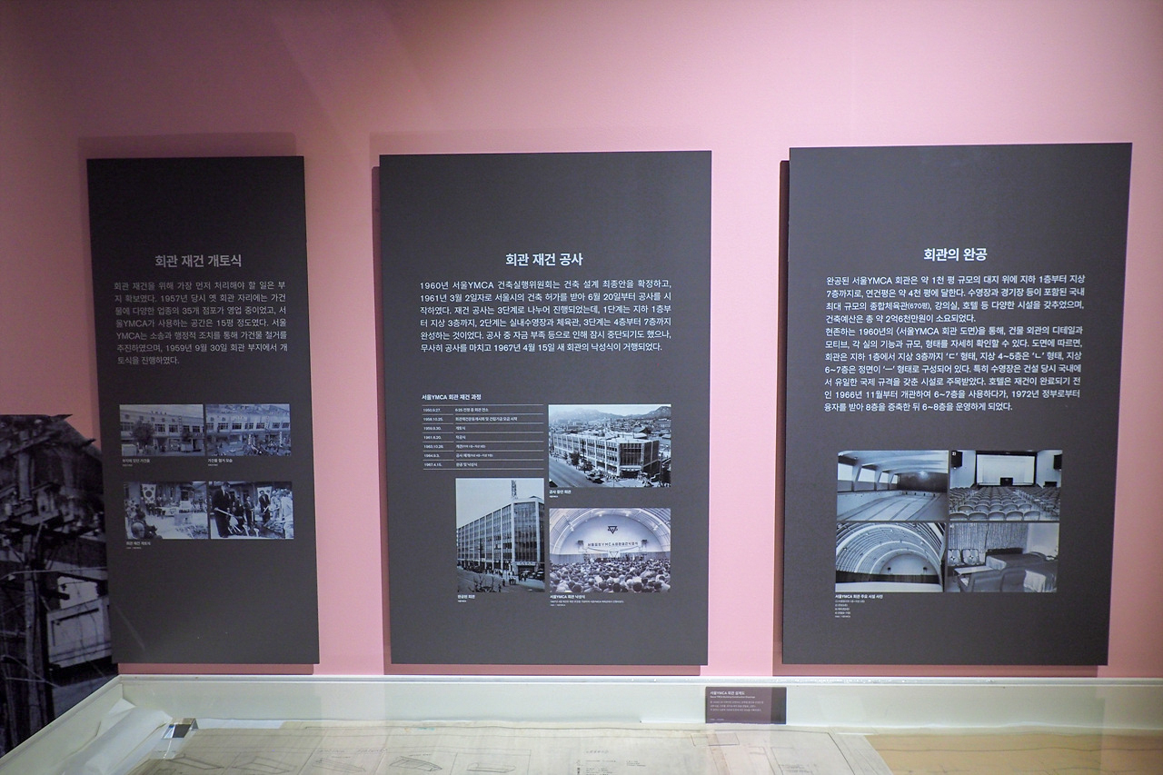 1부에서는 YMCA의 창립과 회관 건립의 역사, 일제강점기 민족운동, 2부에서는 해방 이후 시민운동을 조명한다. 3부에서는 근대 생활체육의 도입과 발전 등을 주제로 사진, 도면, 책자 등 다양한 자료를 소개한다.