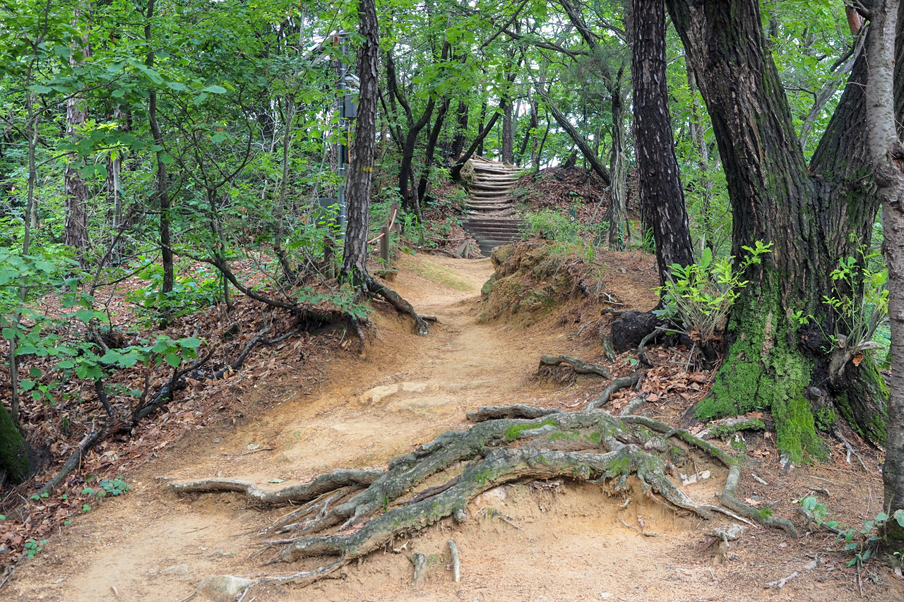저 나무뿌리에 잘못 걸리면 코깨지기 십상.