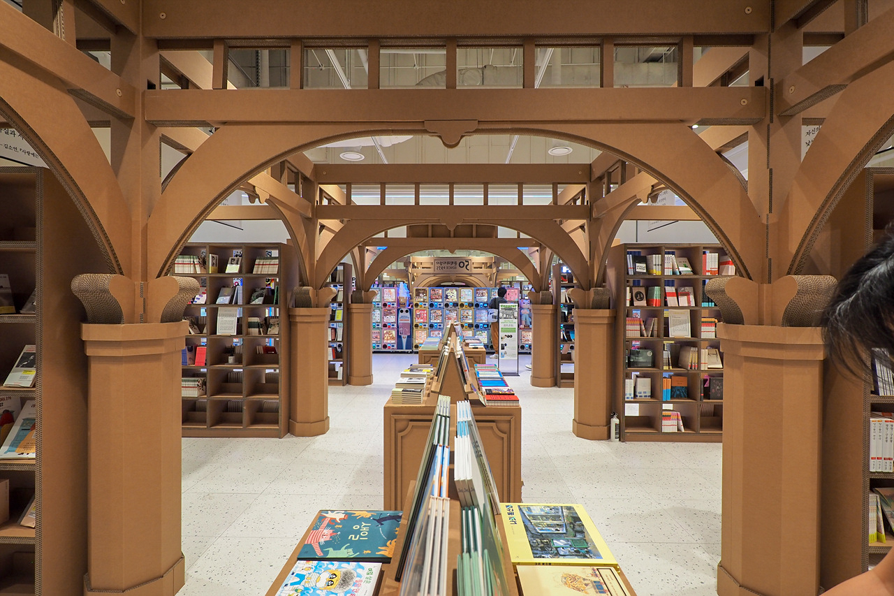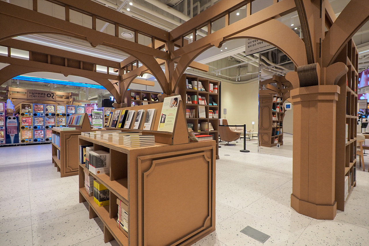 팝업스토어 성격상 대규모 투자가 어려운만큼 경제성을 무시할수 없는데, 골판지는 멋진 아이디어다.