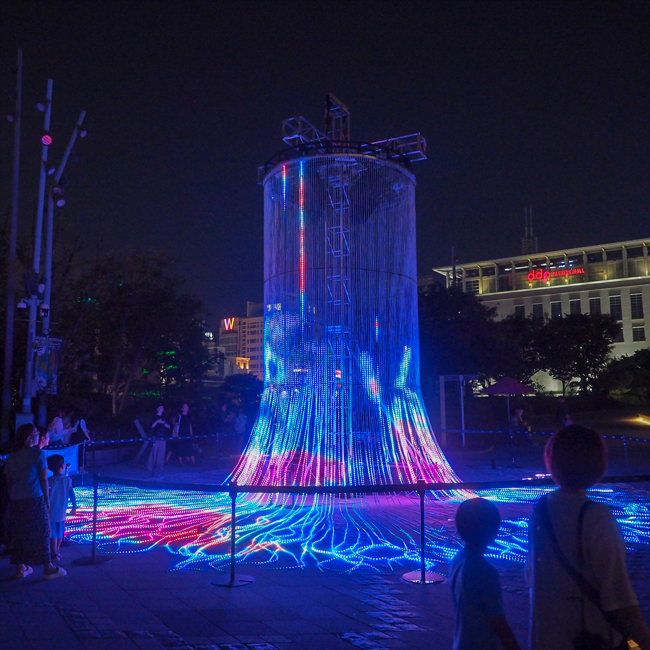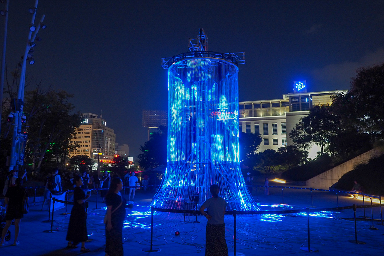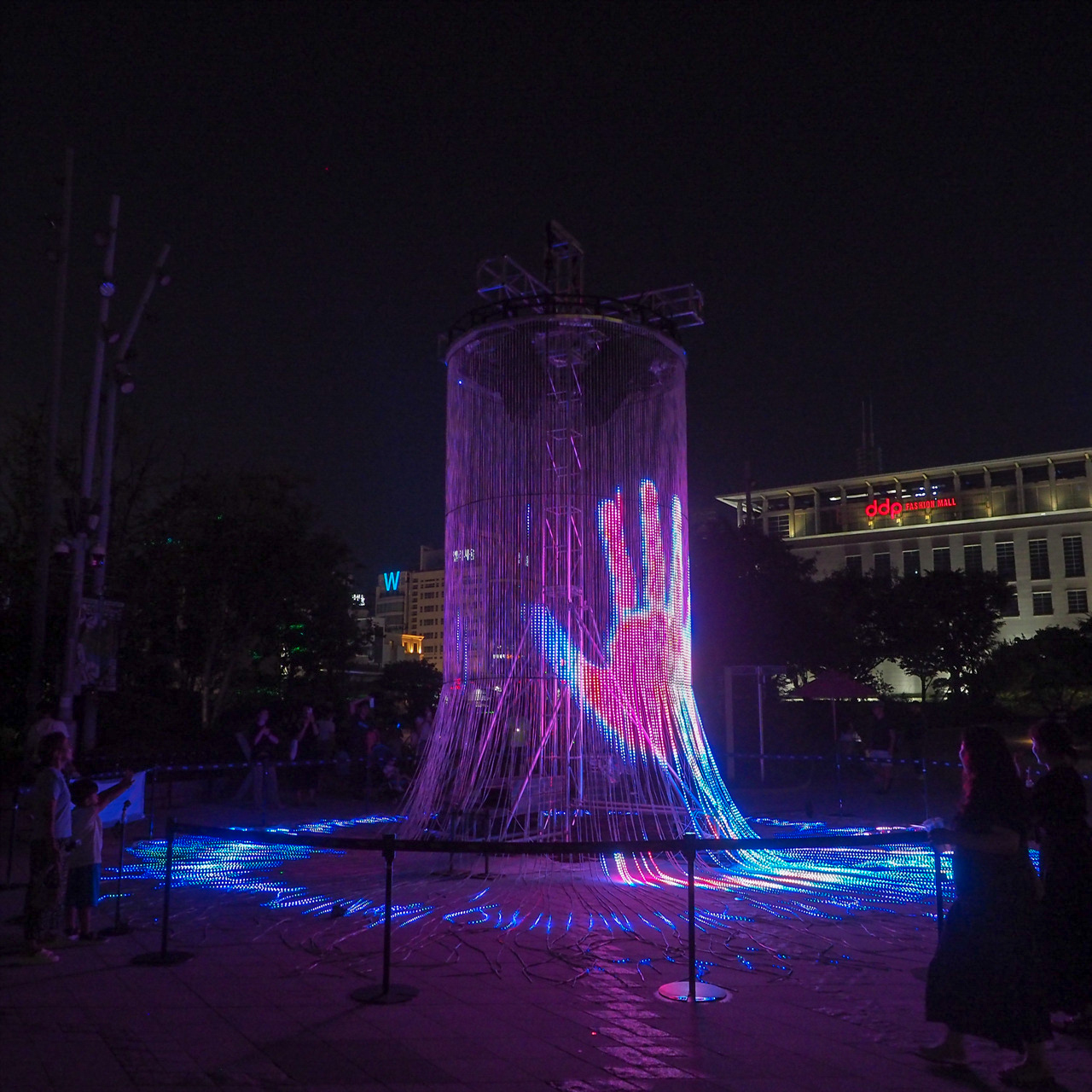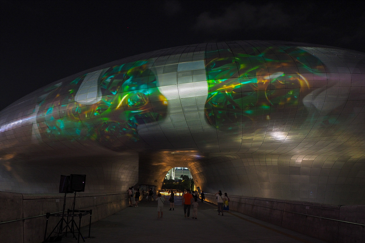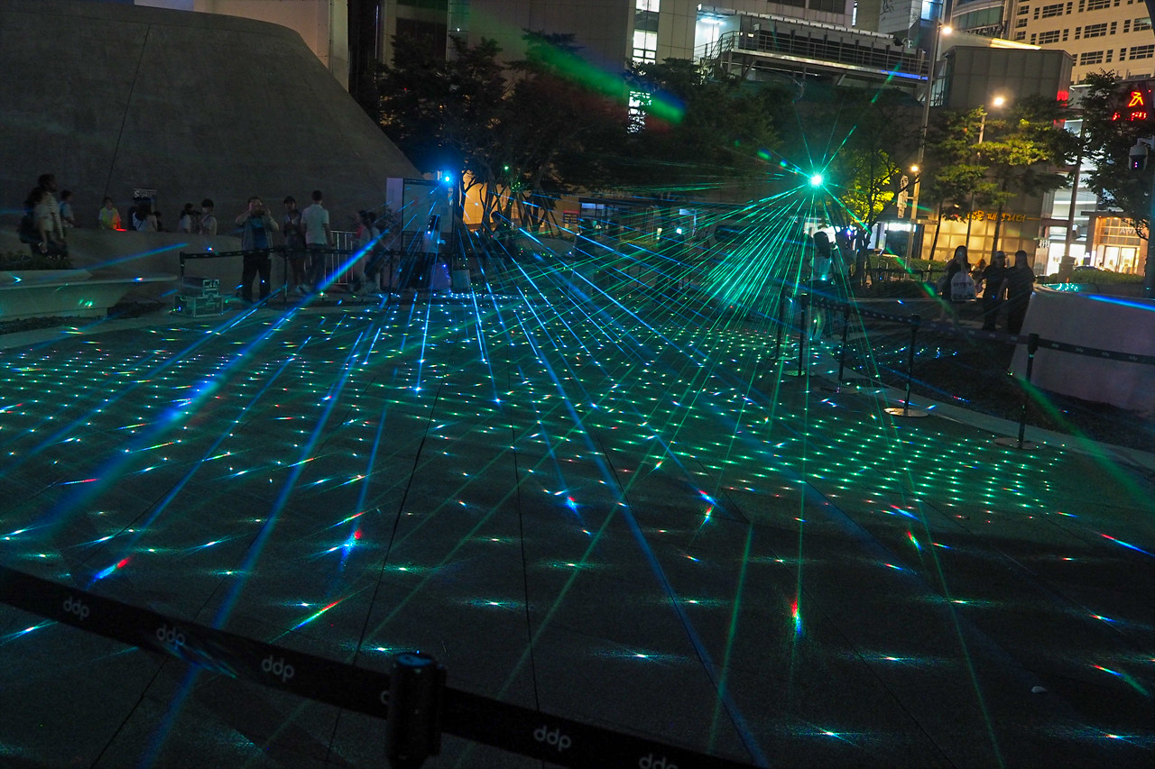 DDP ‘미래로’ 벽면에 투사된 ‘Into the Waves of Light’는 미래로 펼쳐지는 빛의 흐름과 감각의 물결을 시각화하여 관객들을 일상과 예술이 어우러지는 미디어아트의 세계로 깊숙이 이끌었다. 바닥분수, 안개분사 캐스케이딩 등 다양한 수경 요소와 어우러진 빛의 향연은 그야말로 황홀경이었다.