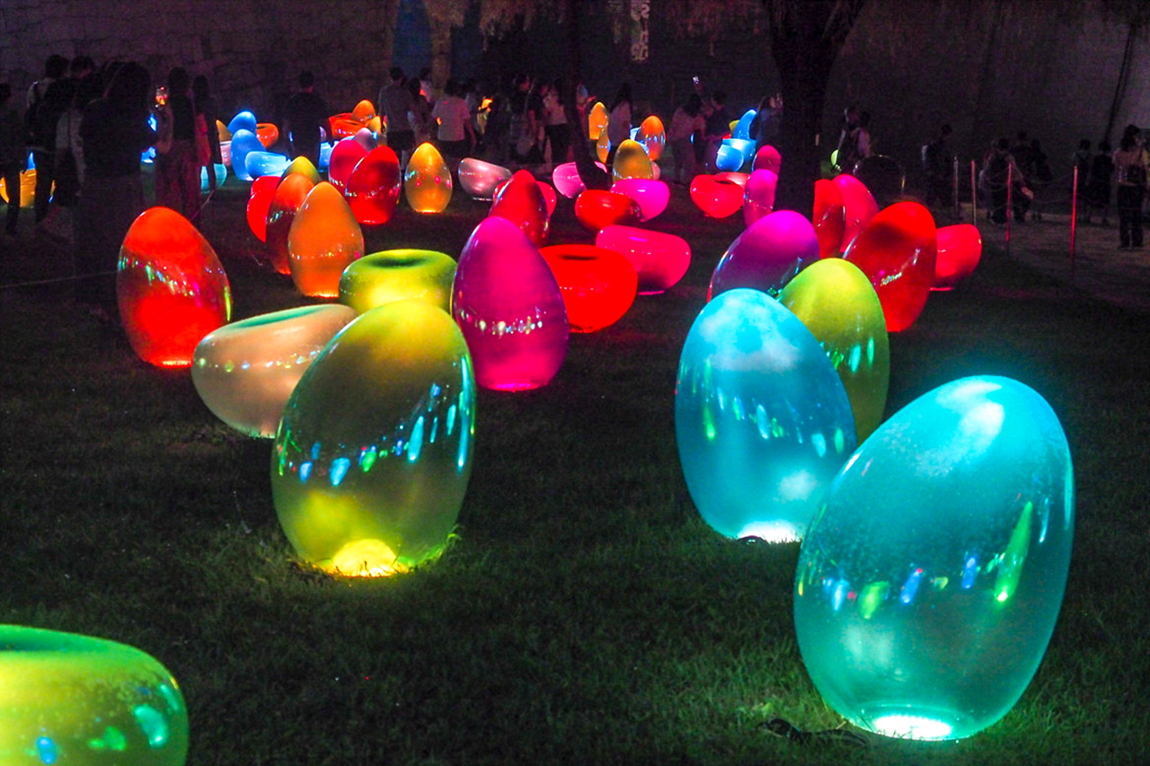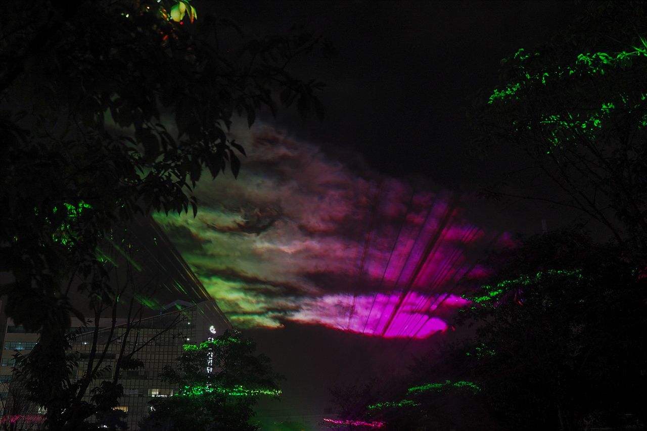 공원부 잔디밭에 펼쳐진 메인 콘텐츠 ‘Light Drops’과 한양도성 미디어파사드 ‘Fluid Memory’, 그리고 레이저 아트 ‘Beam Trace’가 어우러져 성벽을 따라 펼쳐지는 빛의 패턴과 유체 시뮬레이션은 마치 과거와 미래를 넘나드는 시각적인 여행을 하는 것 같았다.