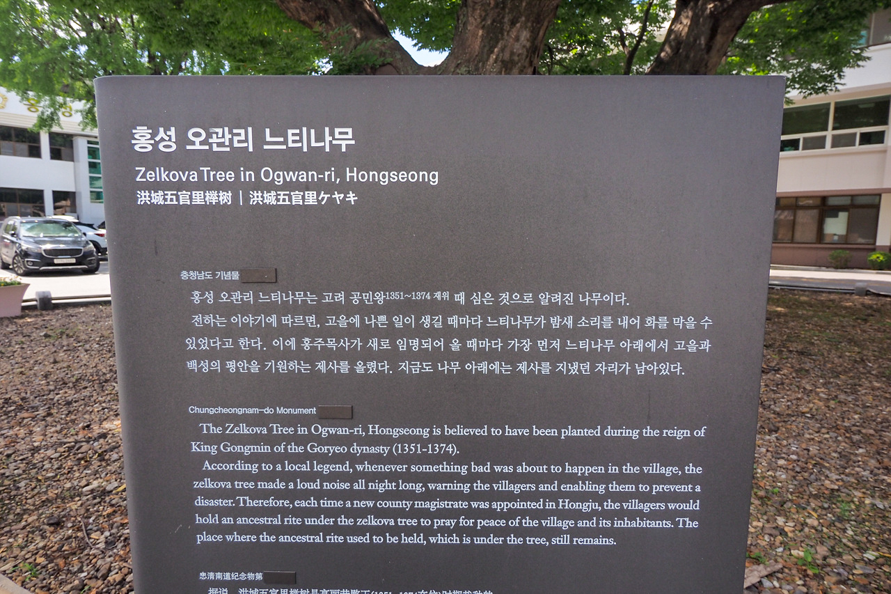 홍성 오관리 느티나무는 고려조의 공민왕이 식재한 것으로 전해져 오고 있다.