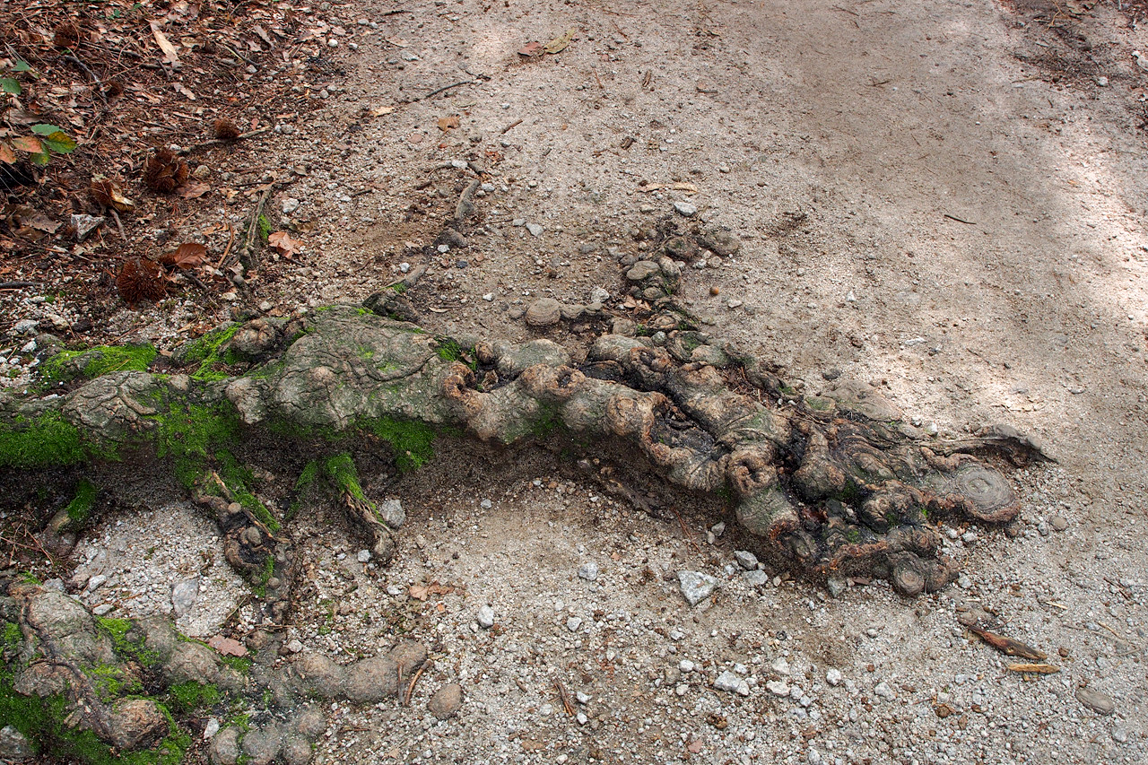 삐져나온 나무뿌리가 화석같다.