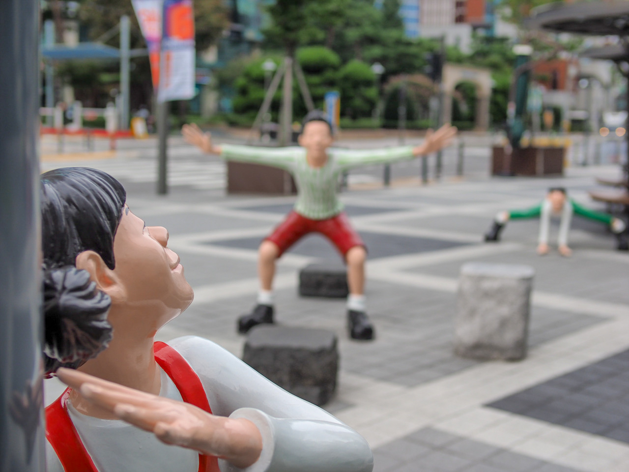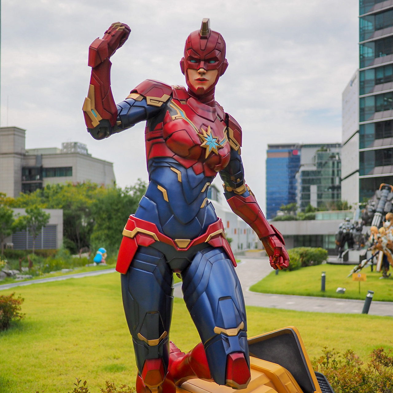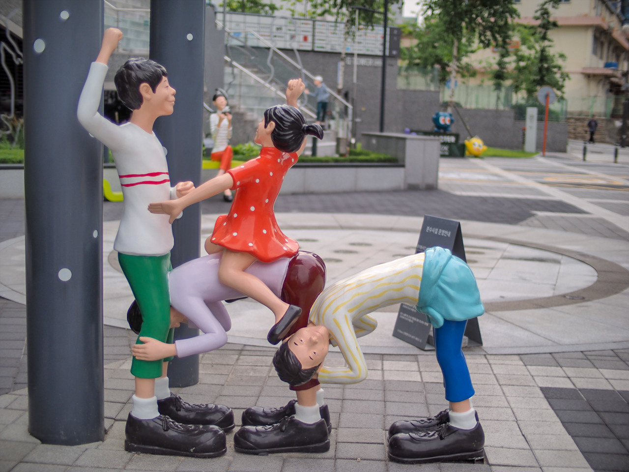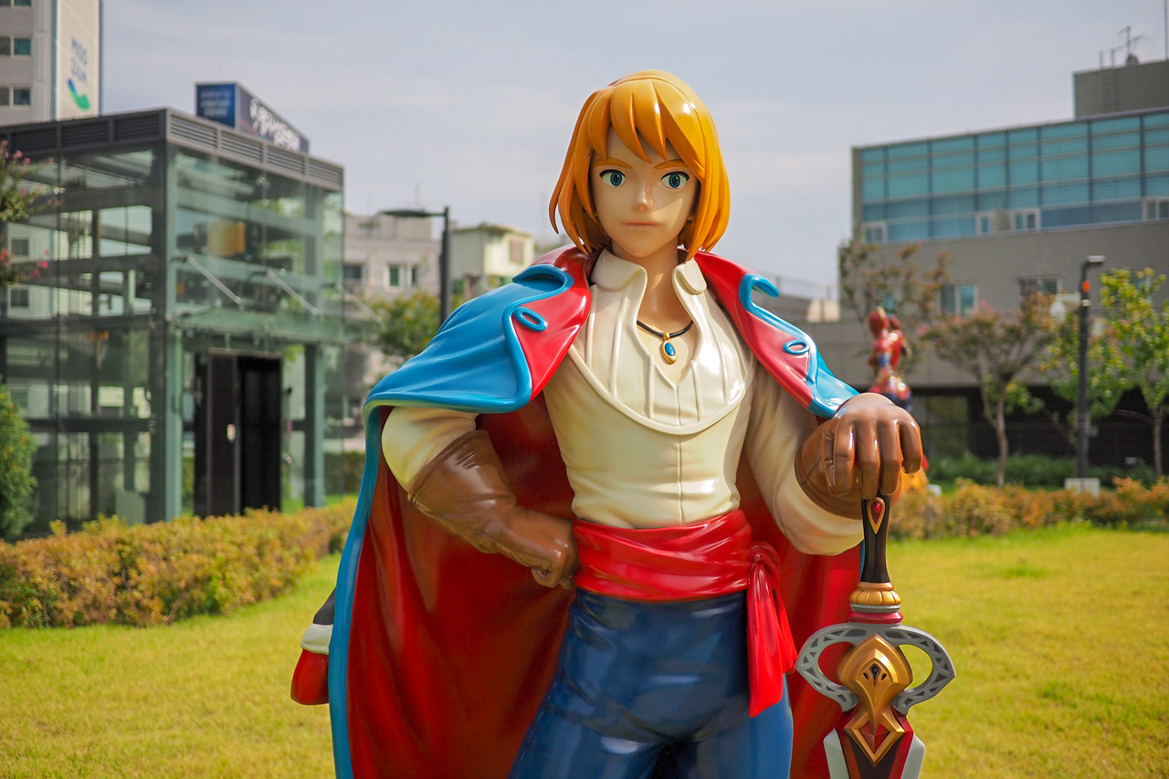 계단을 오르면 멋진 캐릭터들이 기다린다.