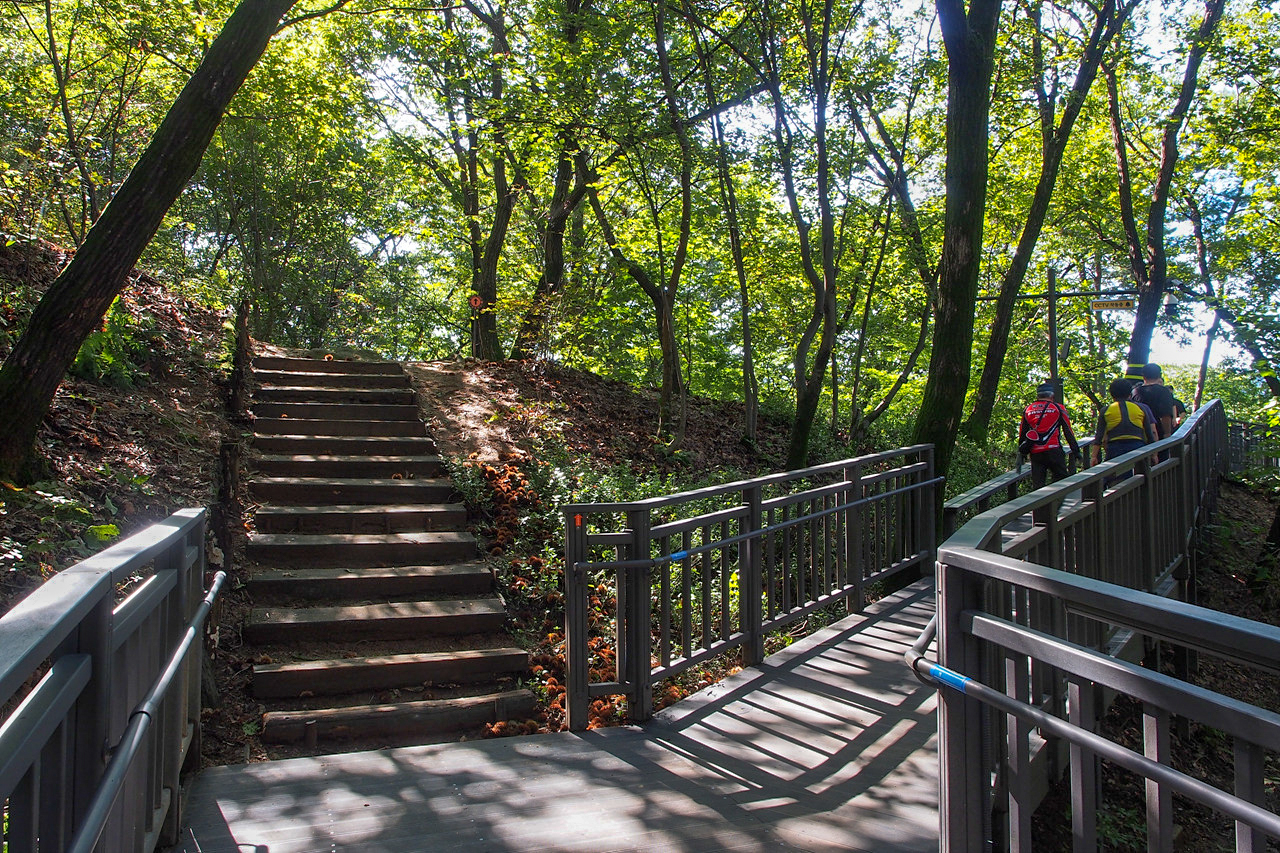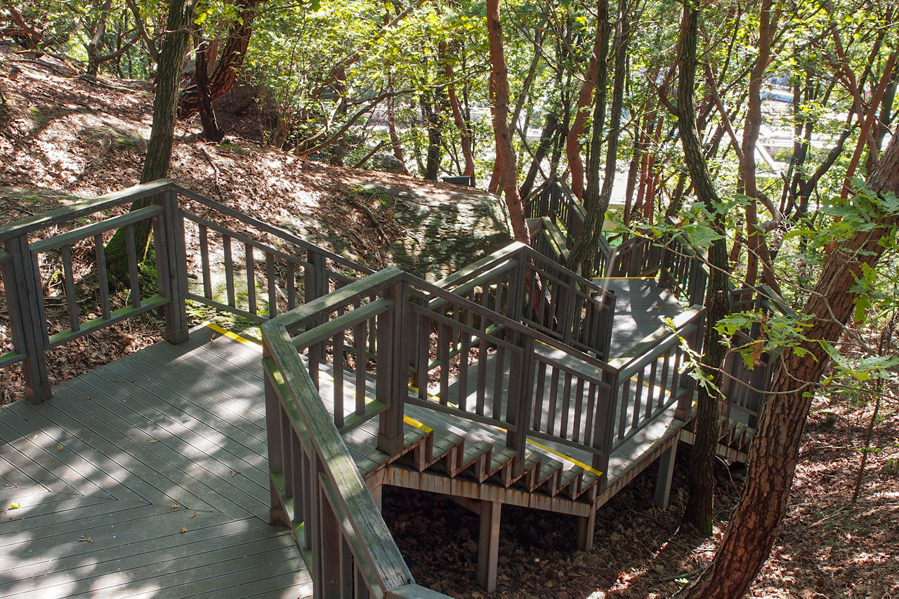 수락산 순환산책로인데 지그재그로 무장애 데크길이고 가운데로 직진길도 있다.