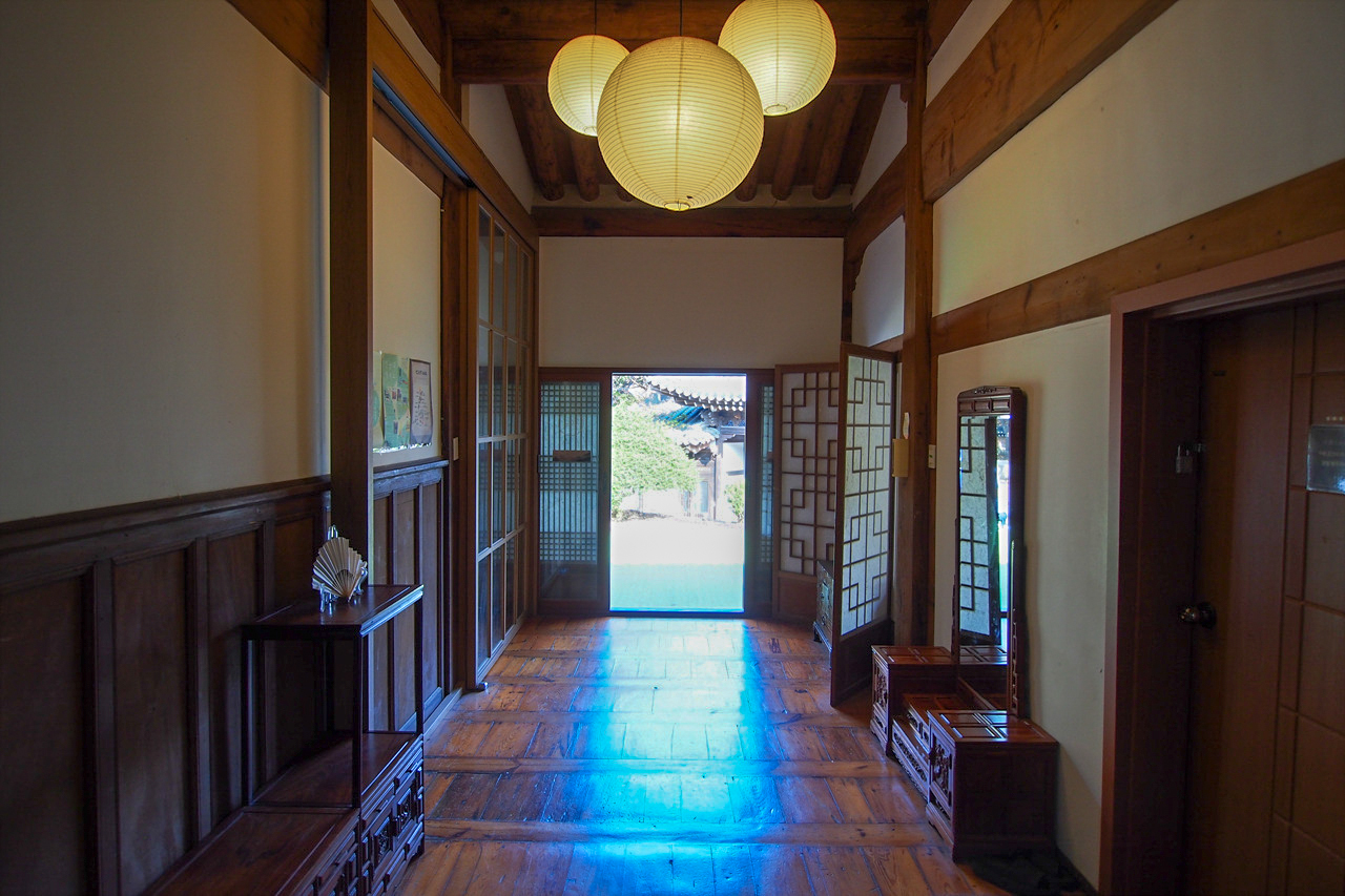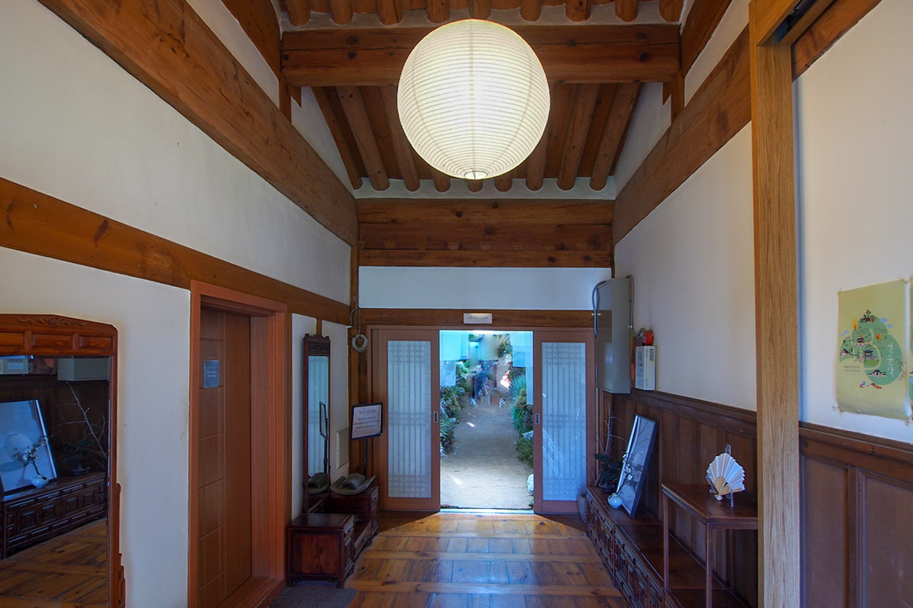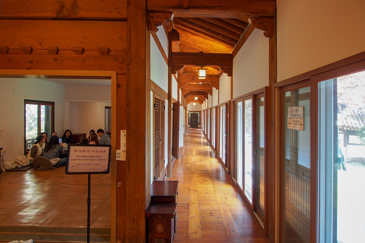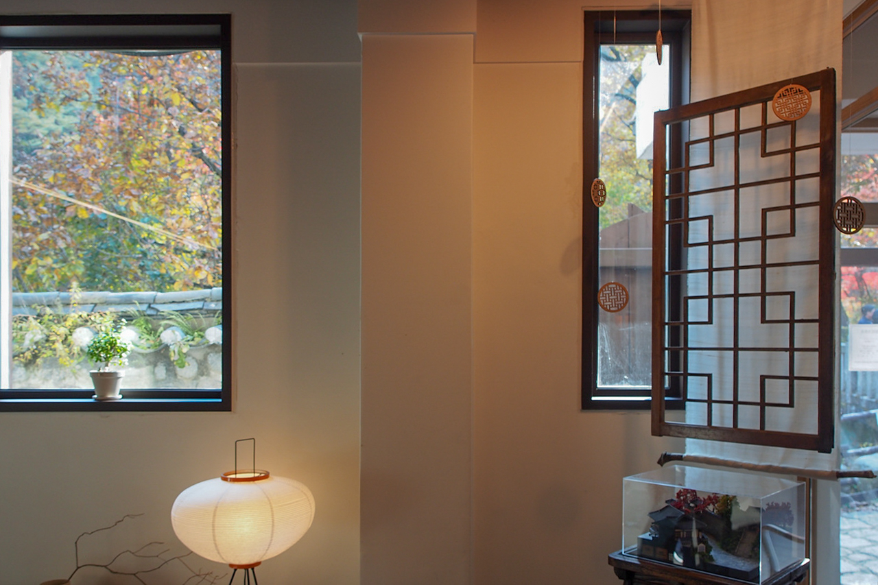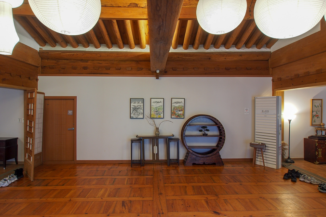 화려한 선운각의 사계절 사진을 감상하다 보면 한옥에 닿는다. 한옥은 너른 앞마당을 거느리고 있다. 마당은 야외 웨딩 장소로 사용한다. 마당에서 문을 통과하면 다리가 나온다. 한옥 두 채가 다리로 연결된 구조다. 다리는 포토 존으로 인기다. 한옥 내부로 들어서면 천장에 달린 커다란 등이 은은한 분위기를 풍긴다. 사람들이 차를 마시며 담소하는 모습이 평화롭다. 차를 가지고 마당에 나와 볕을 쬐며 겨울 정취를 즐긴다. - 안내문