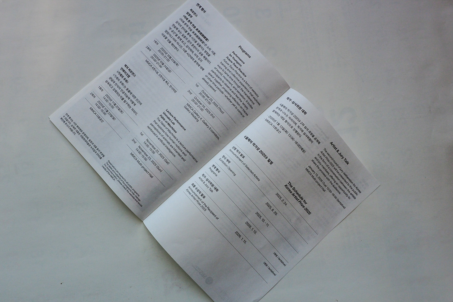 네 작가는 각기 다른 매체와 주제를 경유하며 감각되지 않는 것—감춰지거나 누락되고, 소외되거나 잊혀진 세계의 층위들—을 추적한다. 이들은 “비가시적인 세계는 어떻게 드러날 수 있는가?”라는 질문을 따라 재현의 역학을 파헤치고, 세계를 인식하는 방식 자체에 의문을 던진다. «올해의 작가상 2025»는 청취와 정치, 전통과 동양화, 미신과 과학, 기술과 인간의 관계를 오가며 작가들이 열어젖힌 틈새에서 생성되는 새로운 감각과 서사를 살펴보고자 한다. ‘경계에서 비가시적인 것을 찾되 서로 다른 곳을 바라보는 자’로서 한데 모인 네 작가의 세계는 서로가 만들어 내는 경계선을 밟고, 지나가고, 머무는 방식을 체화하는 가운데 풍성해질 것이다. - 국립현대미술관