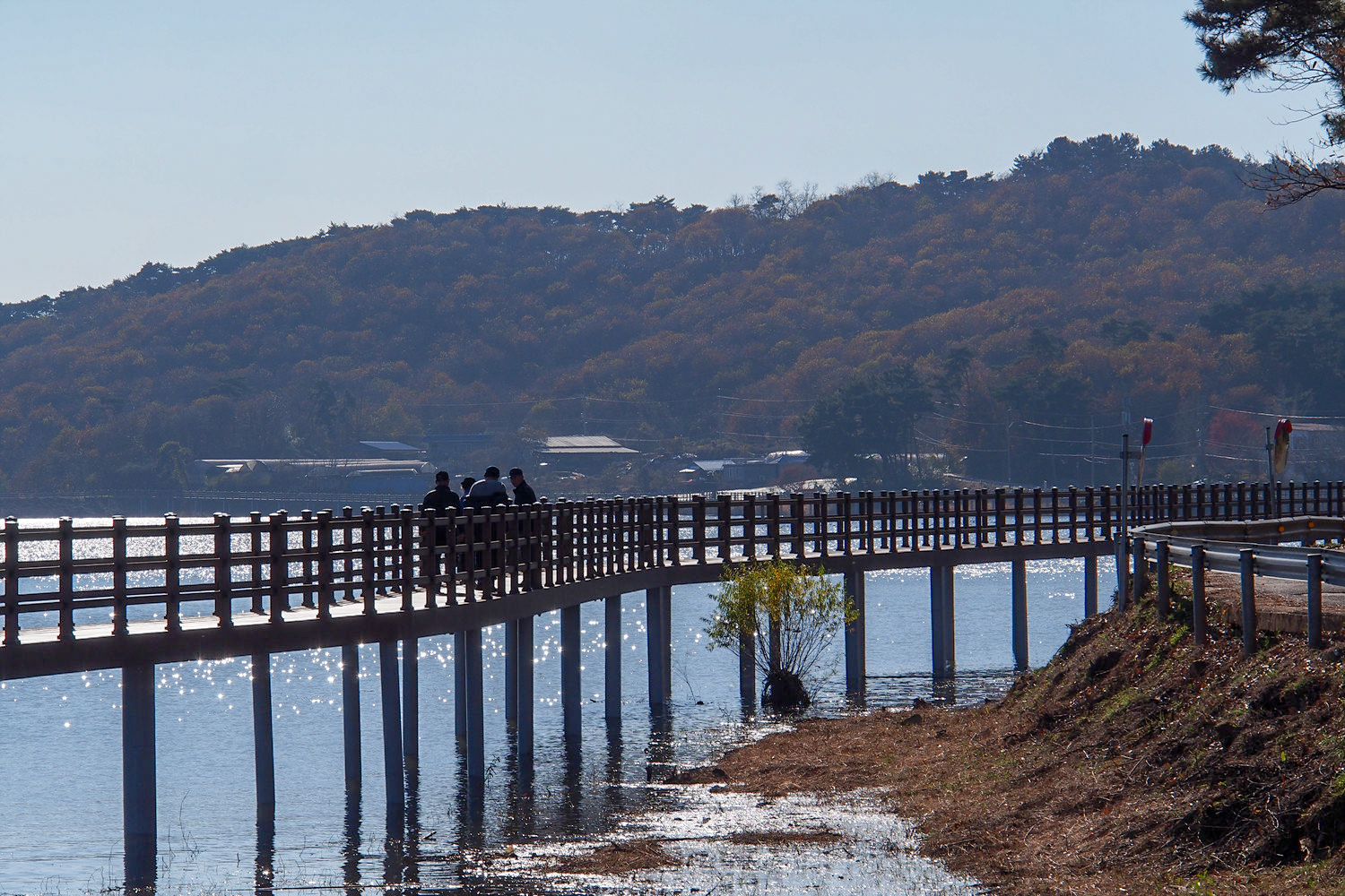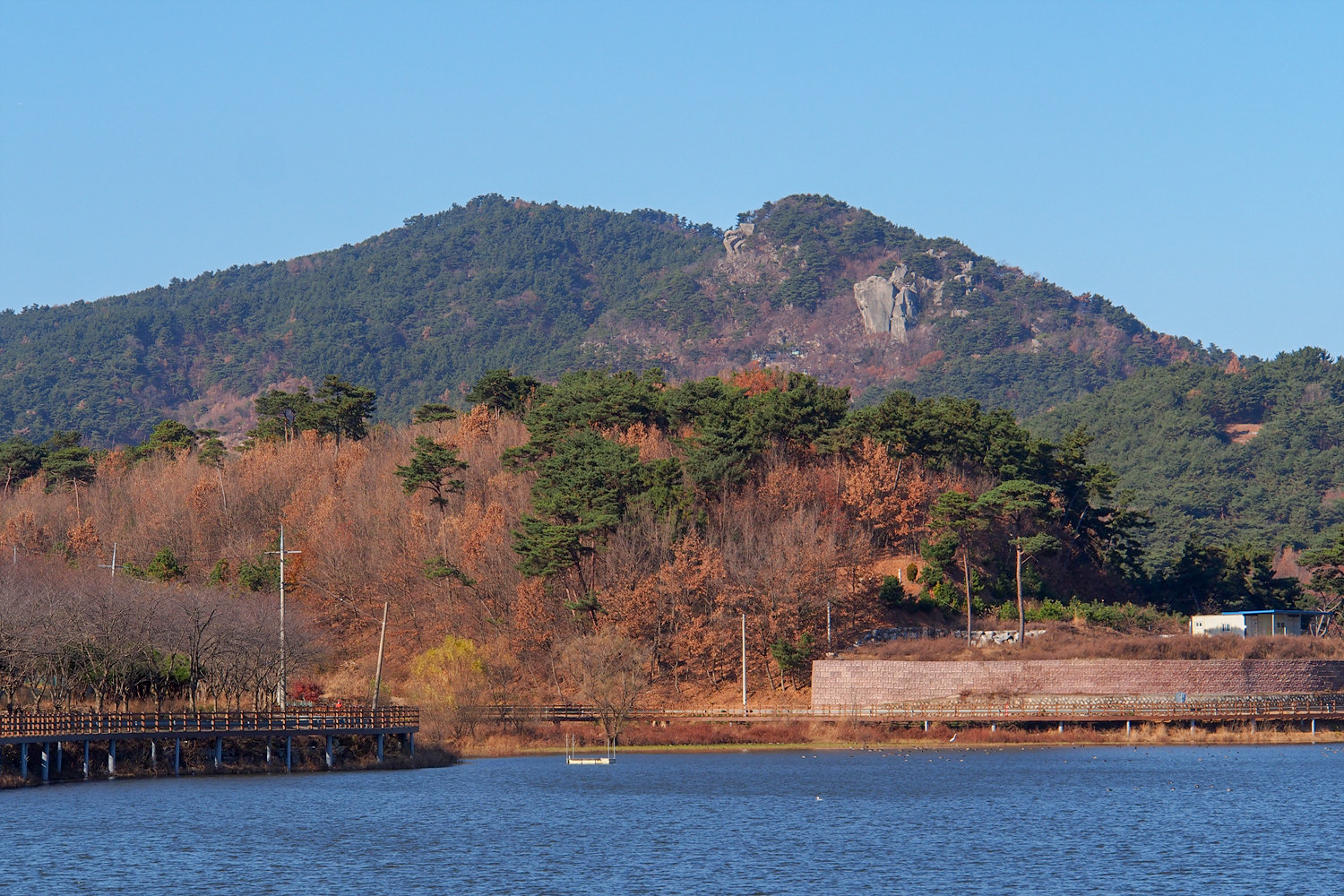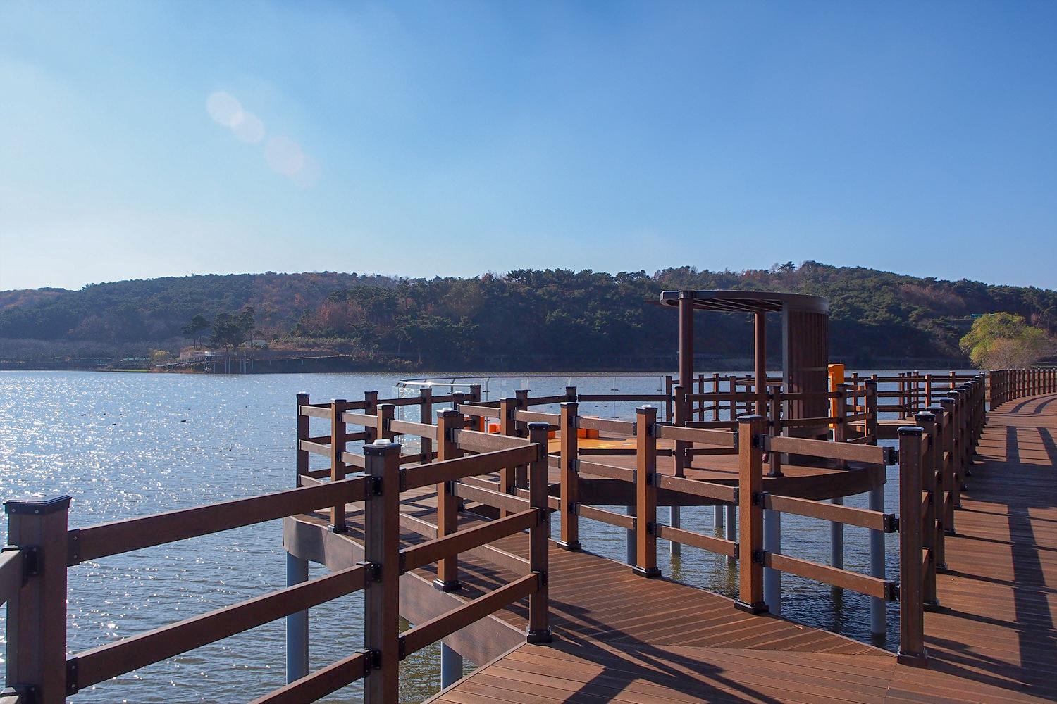 저수지 반대편에 보이는 데크길