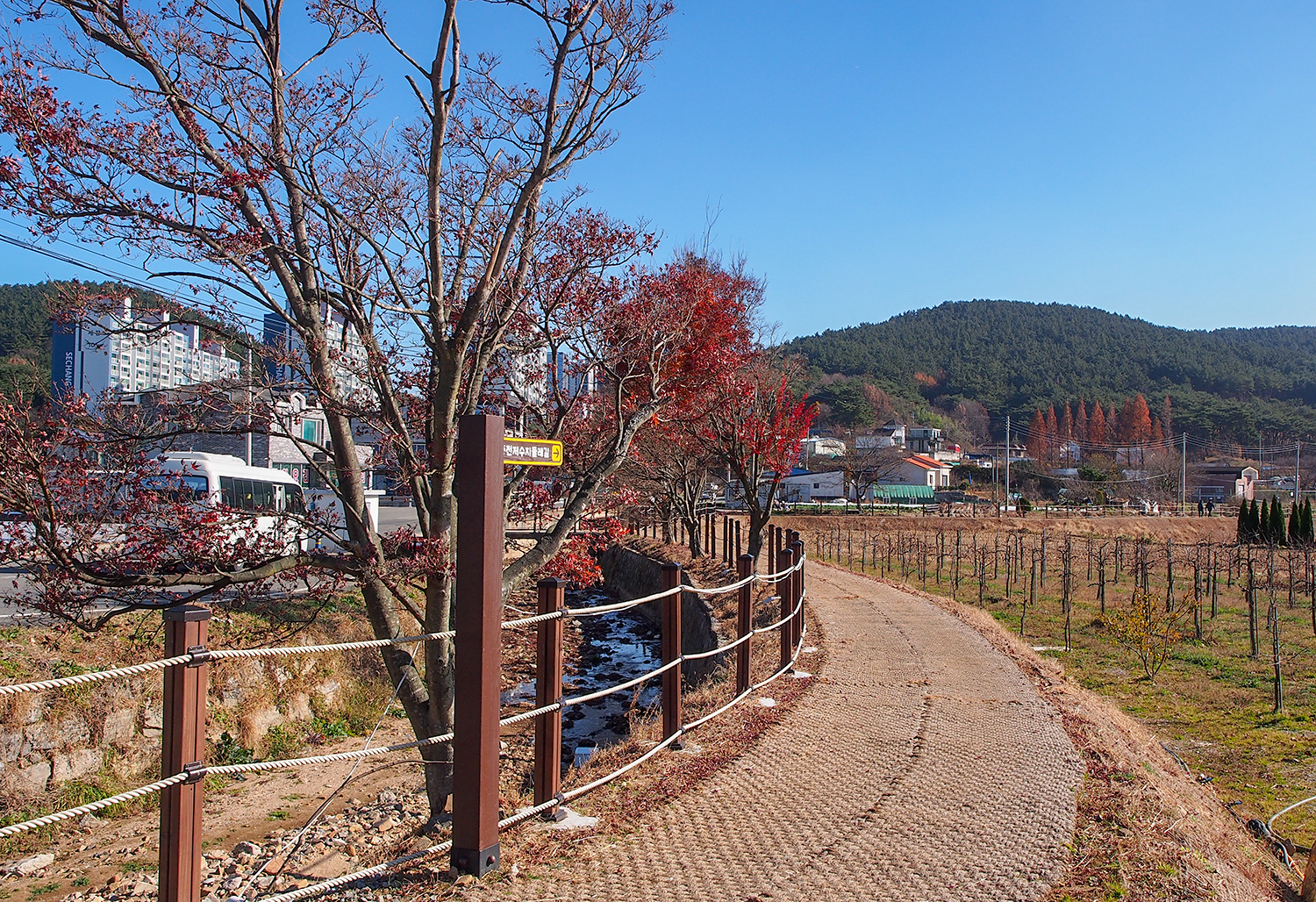 주차장에 차를 주차시키면 바로 둘레길로 들어선다.