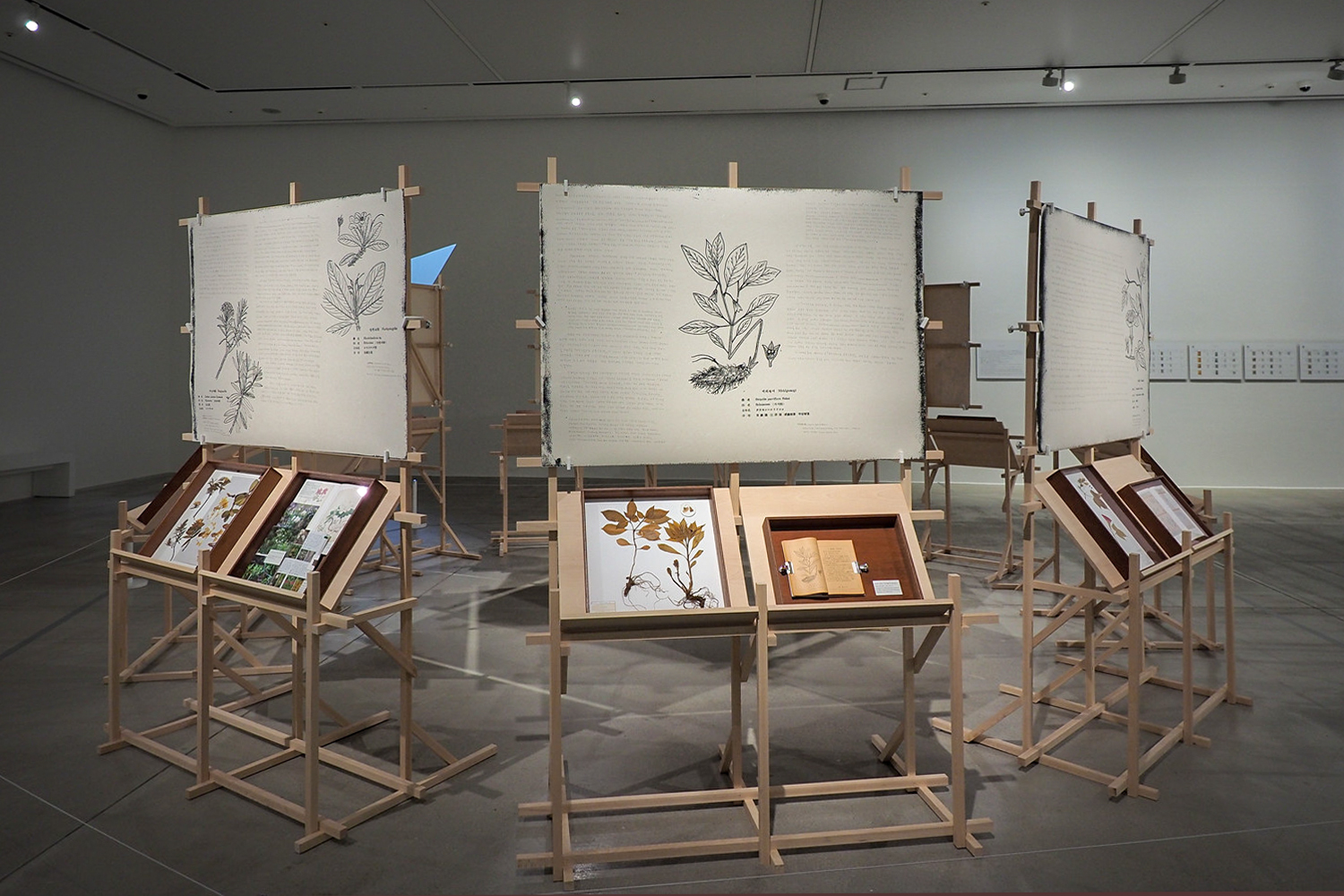 《미완의 식물지―이소요》는 예술과 과학 지식을 매개하고, 예술과 학술을 융합하는 창작을 지속해 온 이소요의 연구기반 예술을, <『조선식물도설 유독식물편』 , 주석>으로 선보인다. 직접 관찰과 채집을 통해 한반도 식물을 집대성하려던 도봉섭과 심학진이 남긴 『조선식물도설 유독식물편(朝鮮植物圖說 有毒植物編)』은 한반도 식물지(植物誌) 편찬으로 가는 하나의 과정이었고, 당대와 후대의 여러 연구자들이 함께 만들어가는 미완의 지식이다. 이소요는 예술가의 연구로 동참하여 이 책에 담긴 식물지식 전파와 이동, 그리고 책 밖에 실재하는 식생대 형성을 수년간 탐구해왔고, 채집한 식물과 연구자료를 보존물과 드로잉으로 가공한 설치미술 작품으로 구현하여 시각적 주석을 덧붙인다. 이를 통해 문헌 분석과 현장 조사를 수행하며 지식의 생성과 흐름을 탐구하는 이소요의 연구기반 예술이 촘촘히 드러난다.