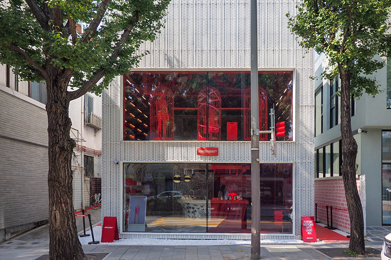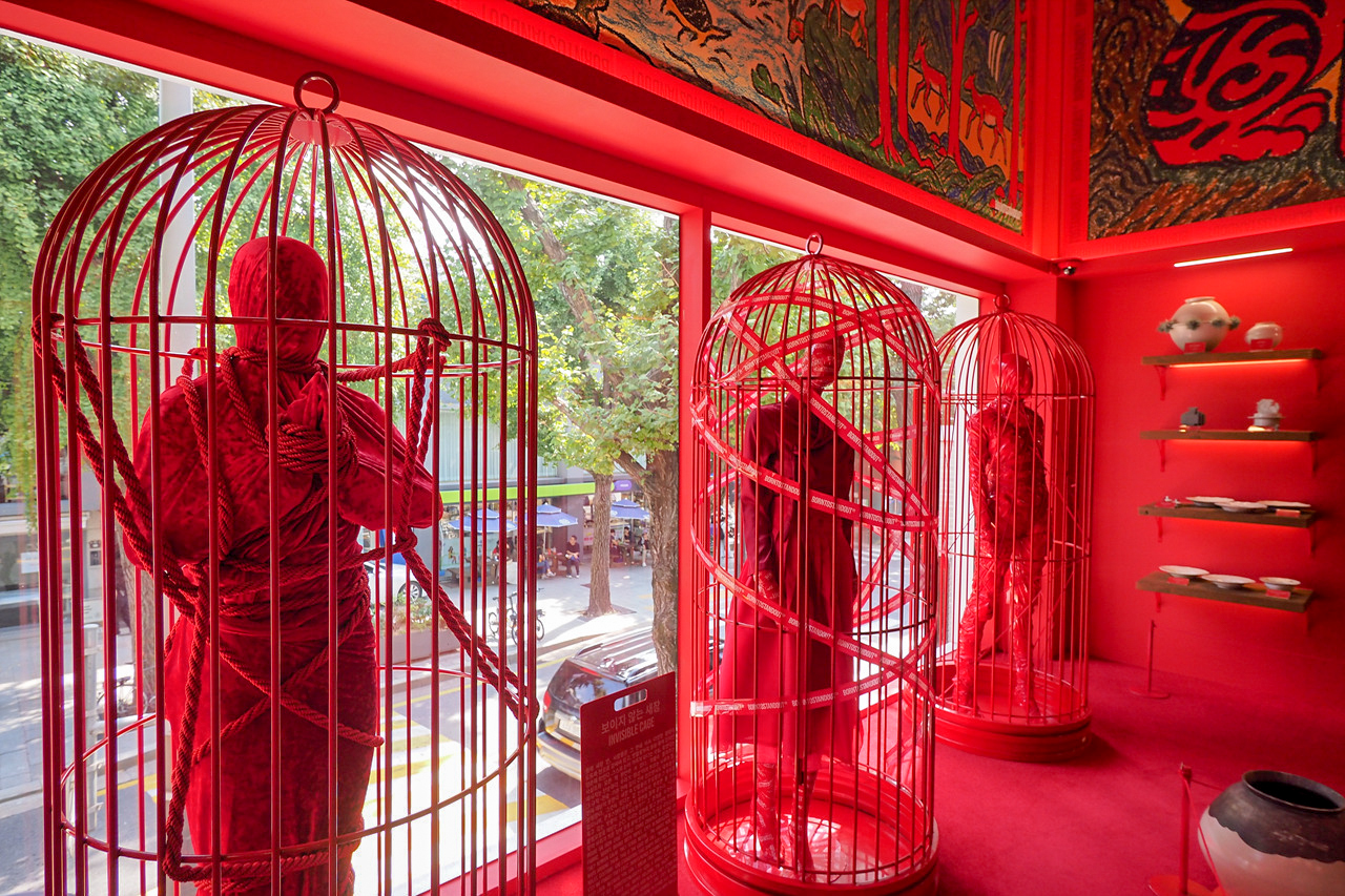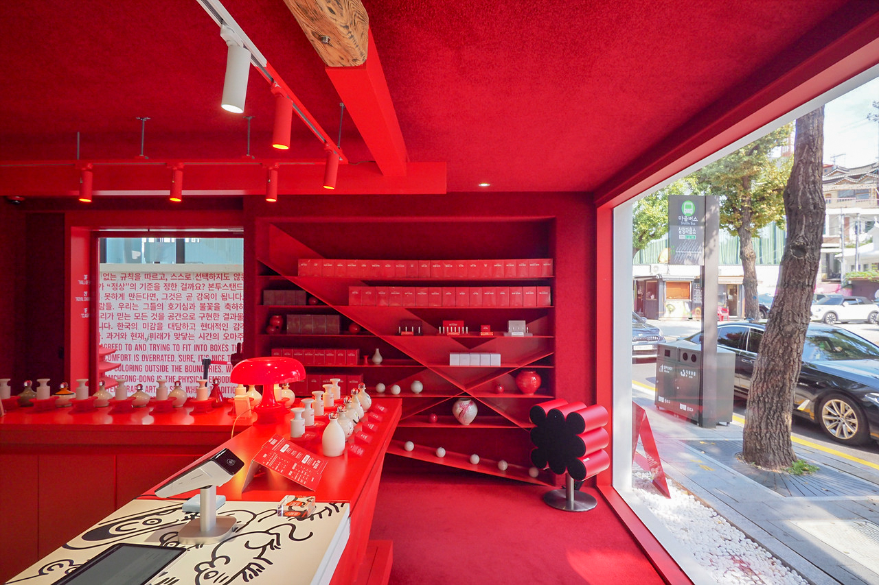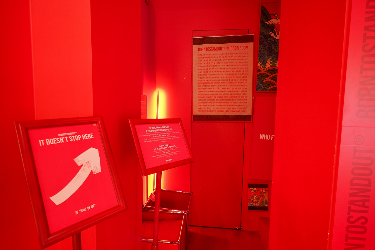 본투스탠드아웃이 삼청동에 두 번째 플래그십 스토어를 열었다. 붉게 물든 소나무와 석탑을 시작으로, 붉은 새장과 조형물, 벽화, 천장화, 거울과 빛이 만들어내는 공간까지. 브랜드가 지향하는 ‘반항과 해방’의 미학이 매장 곳곳에 살아 숨 쉰다. 예상을 깨는 신선한 조합과 감각적인 디테일을 통해 본투스탠드아웃만의 독창적인 세계관을 입체적으로 경험할 수 있다. - 더블유더블유디코리아