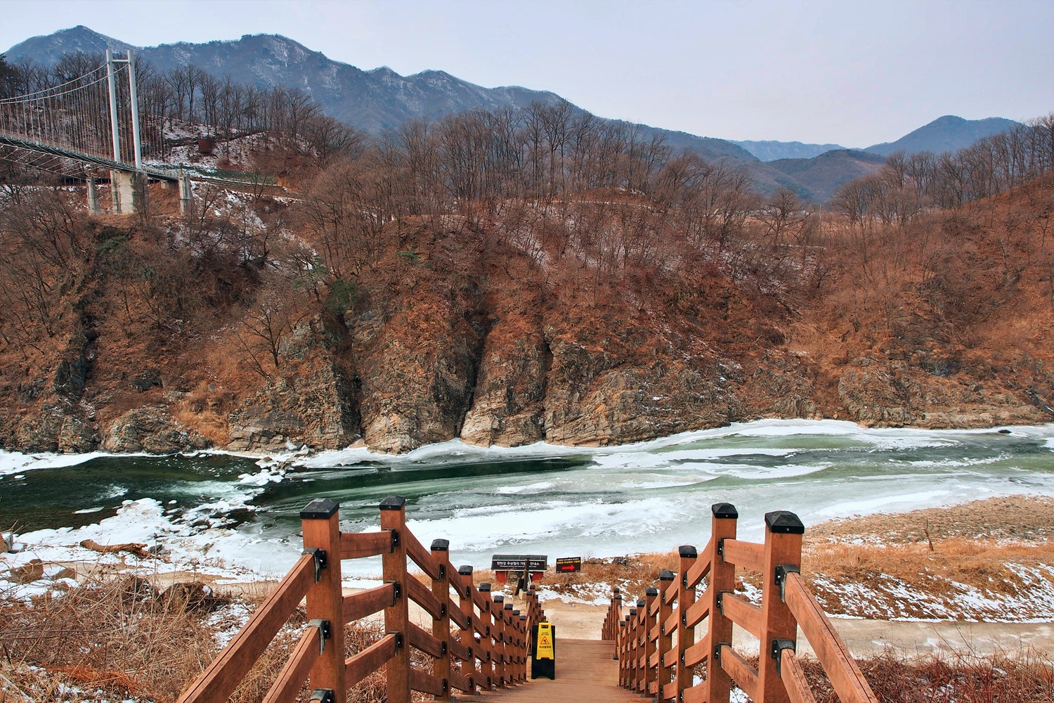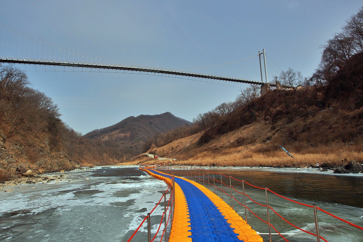 ‘한탄강 주상절리 가람길’은 수면 위를 따라 걷는 부교(플로팅 브릿지)로, 기존 전망 위주의 관람에서 벗어나 주상절리 협곡을 보다 가까이에서 경험할 수 있도록 기획된 동절기 관광 콘텐츠다. 방문객은 물 위를 걸으며 한탄강의 현무암 협곡과 주상절리 절경을 눈높이에서 감상하고, 한탄강이 지닌 지질학적 가치와 경관의 특징을 체감할 수 있다.