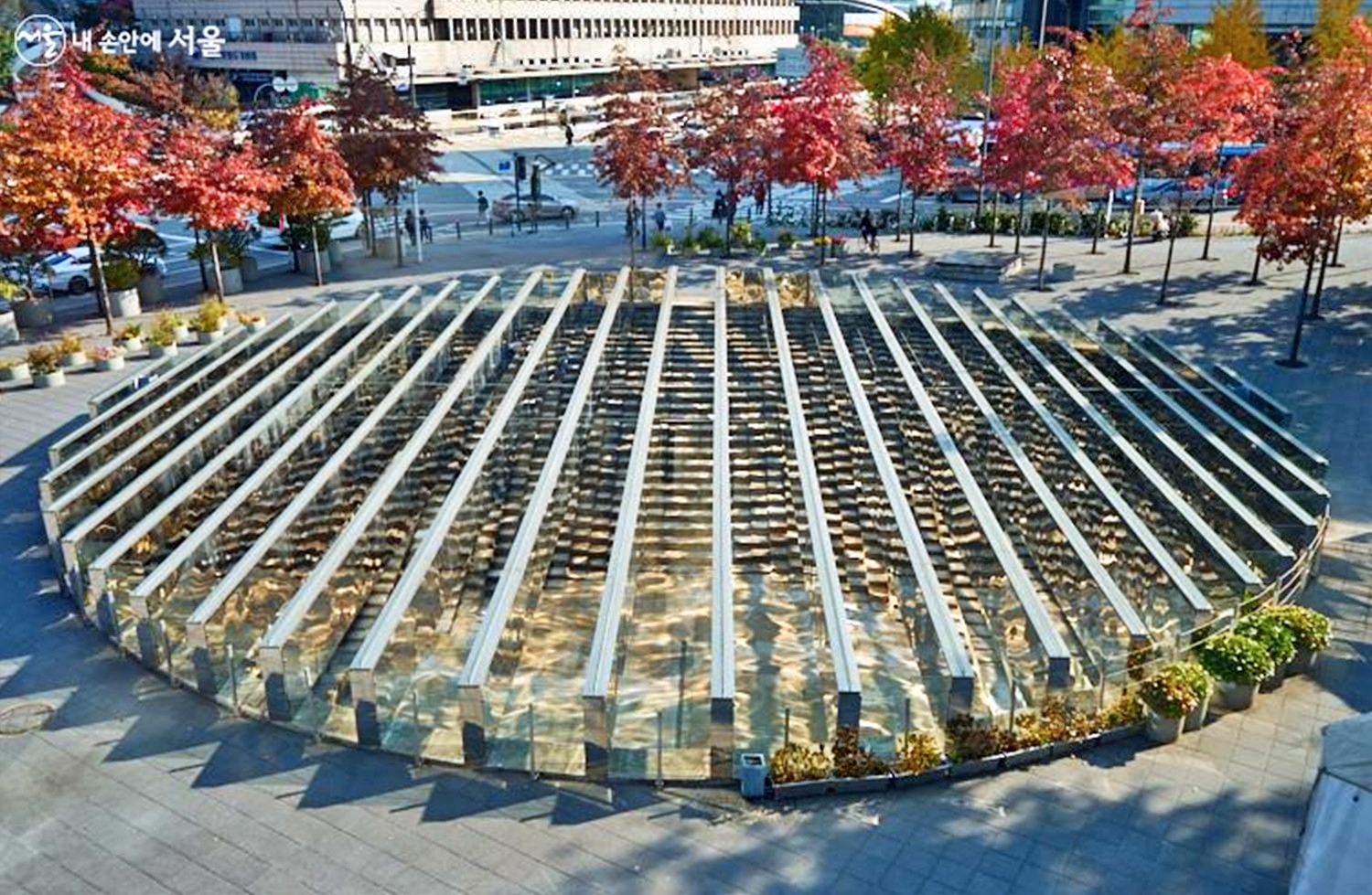 만리동광장에 있는 <윤슬 : 서울을 비추는 만리동>은 매혹적인 경험을 선사하는 작품이다. ‘윤슬’은 ‘햇빛이나 달빛에 비치어 반짝이는 잔물결’을 뜻하는 순우리말이다. 만리동광장의 작품 ‘윤슬’은 강도 바다도 아닌 곳에서 일렁이는 듯한 윤슬을 경험하게 한다. 그것도 마치 윤슬과 내가 하나가 되는 듯한 방식으로. 다양한 미디어아트와 영상콘텐츠가 상영되는 ‘서울로미디어캔버스’는 서울로7017을 산책하다 잠시 쉬며 작품 감상을 하기에 그만이다. - 안내문