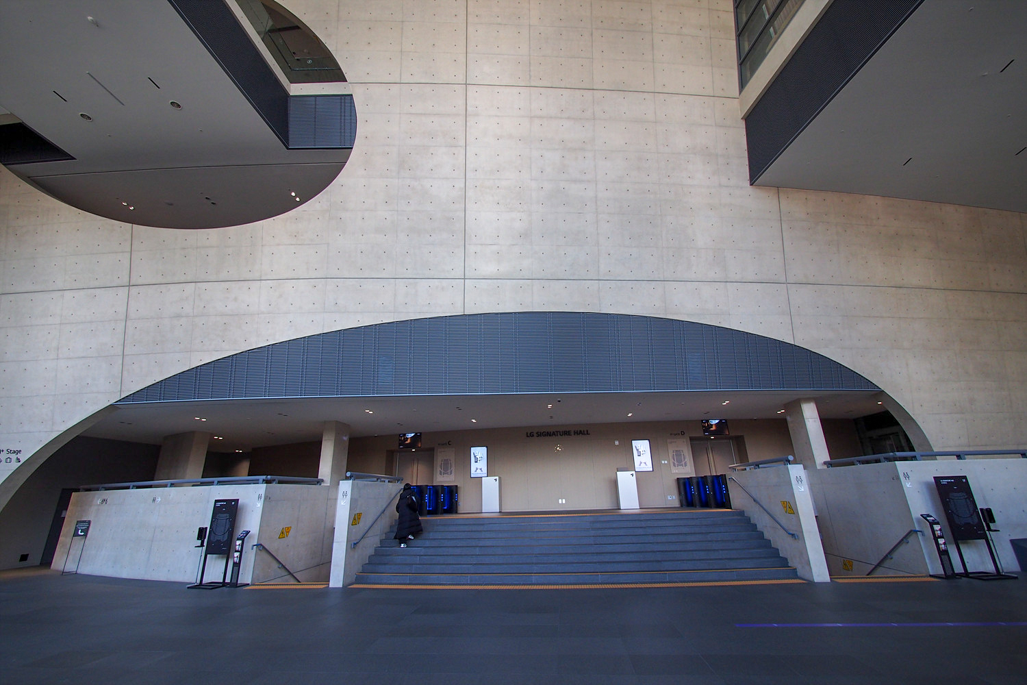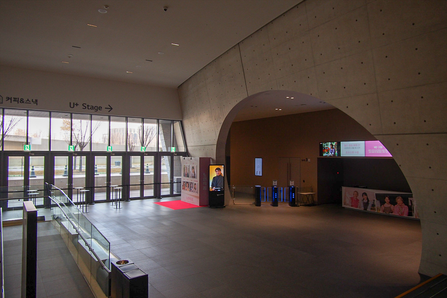 한편 전자, 통신 기업을 계열사로 갖고 있는 그룹 답게 입장 시스템을 자동화해서 게이트에서 표를 어셔에서 주면 한쪽을 뜯어 수표하는 전통적 방식이 아니라 바코드를 찍고 입장하는 방식을 운영한다. 예매시에 모바일 티켓과 지류 티켓을 선택할 수 있는데, 모바일을 선택할 경우 카카오톡으로 전송받은 정보를 통해 조회된 바코드를 그대로 찍으면 되고[5] 지류 티켓을 선택한 경우 1층 로비에 있는 키오스크에서 표를 발권받은 뒤 그 표에 인쇄된 바코드를 찍고 들어가면 된다. - 안내문