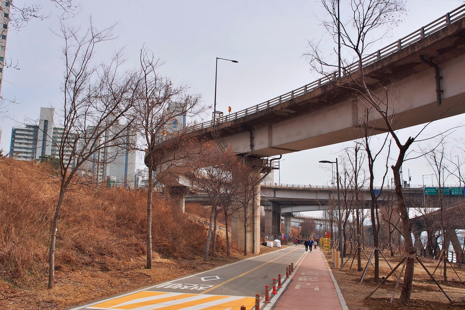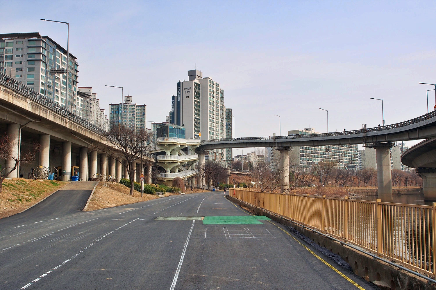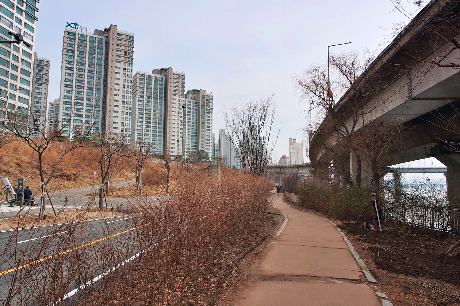 아래 둔치로 내려간다.
