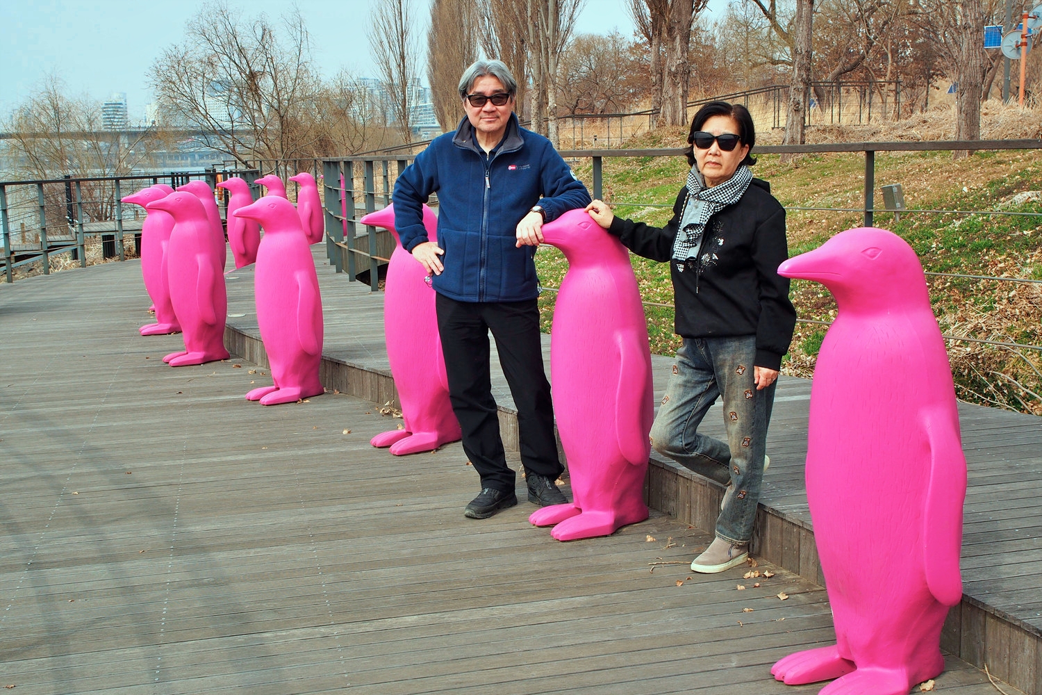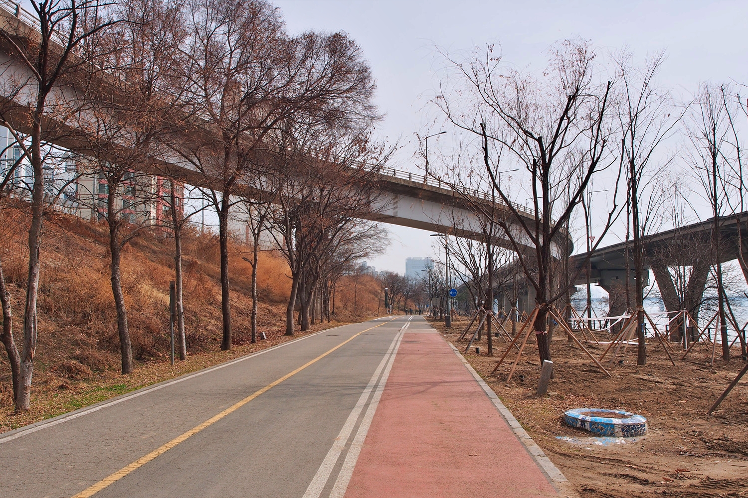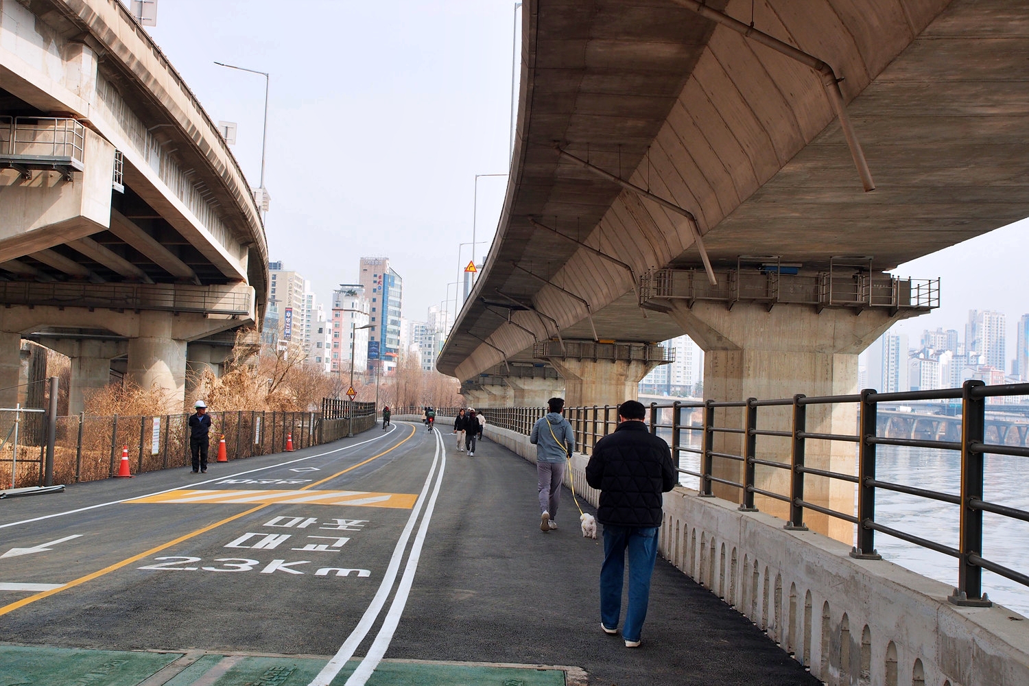 아래 둔치로 내려간다.