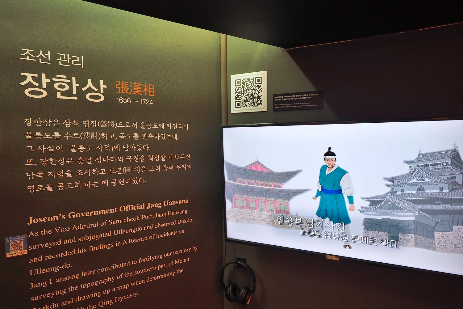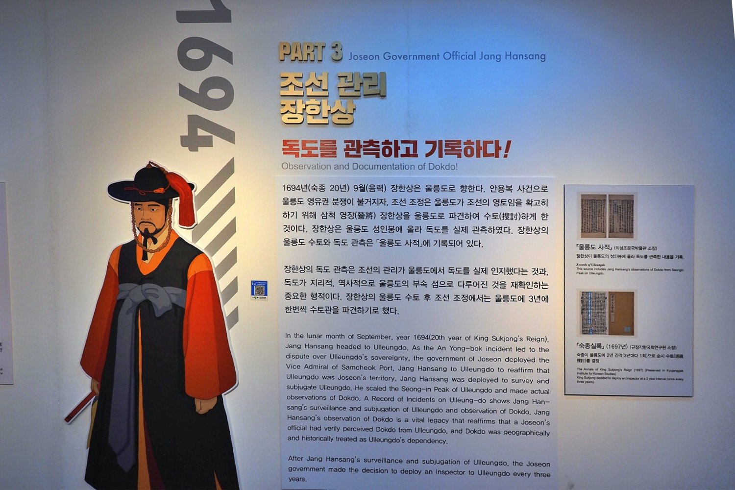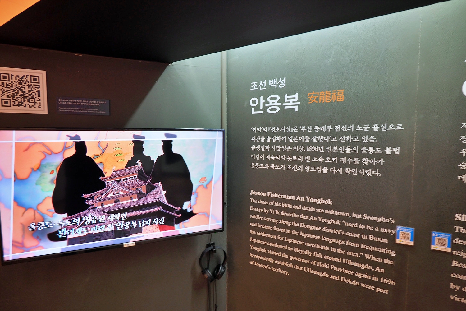 입구에서 오른쪽으로 들어가면 인물로 보는 독도 연대기에 대해 살펴볼 수 있다. 512년 신라 장군 이사부의 내용부터 1693년 조선 백성 안용복, 1694년 조선 관리 장한상, 1881년 고종황제까지 독도를 지키기 위한 우리 민족의 이야기를 둘러볼 수 있다. 특히 조선 백성 안용복은 울릉도에서 불법 어업을 하던 일본인에게 항의하였으며 울릉도가 조선의 영토라는 것을 강력하게 주장한 인물이다. 안용복의 용기는 울릉도, 독도가 조선의 영토임을 일본에게 재확인시켰다는 데에 의미를 둔다.