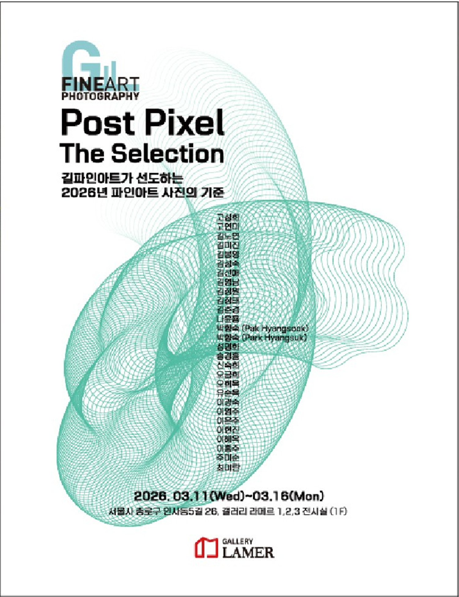 서울 종로구 인사동에 위치한 갤러리 라메르 1층 1·2·3전시실에서 ‘Fine Art Photography: Post Pixel – The Selection’ 전이 3월 11일부터 16일까지 개최되고 있다.