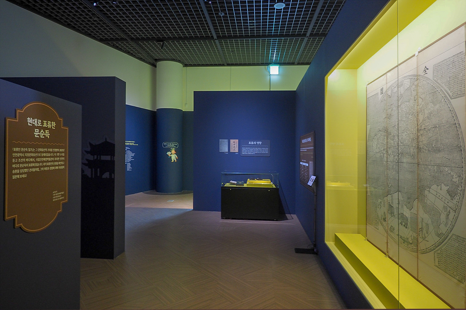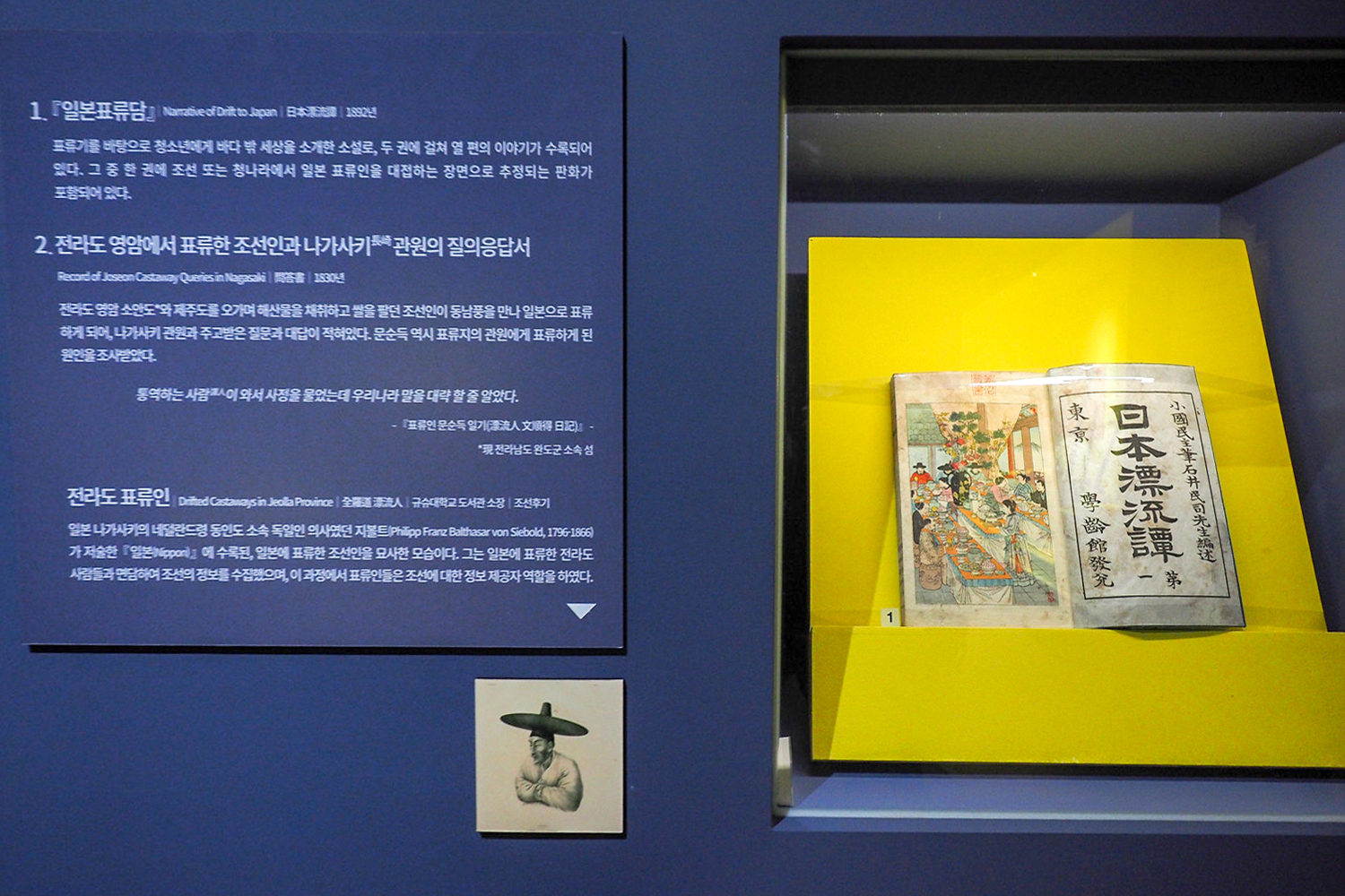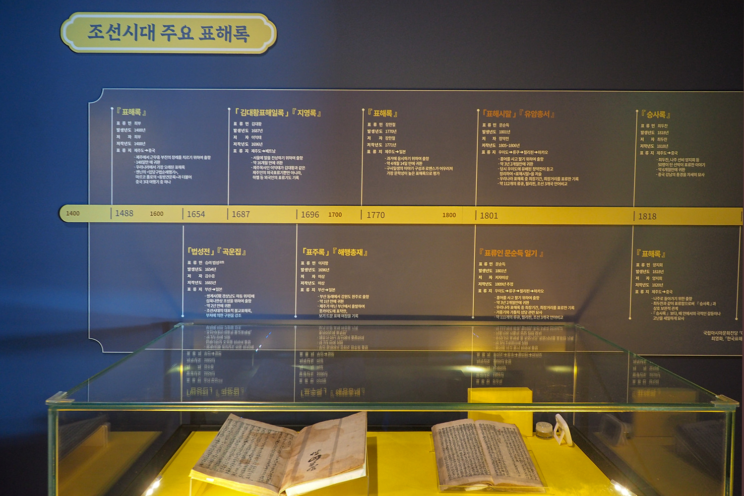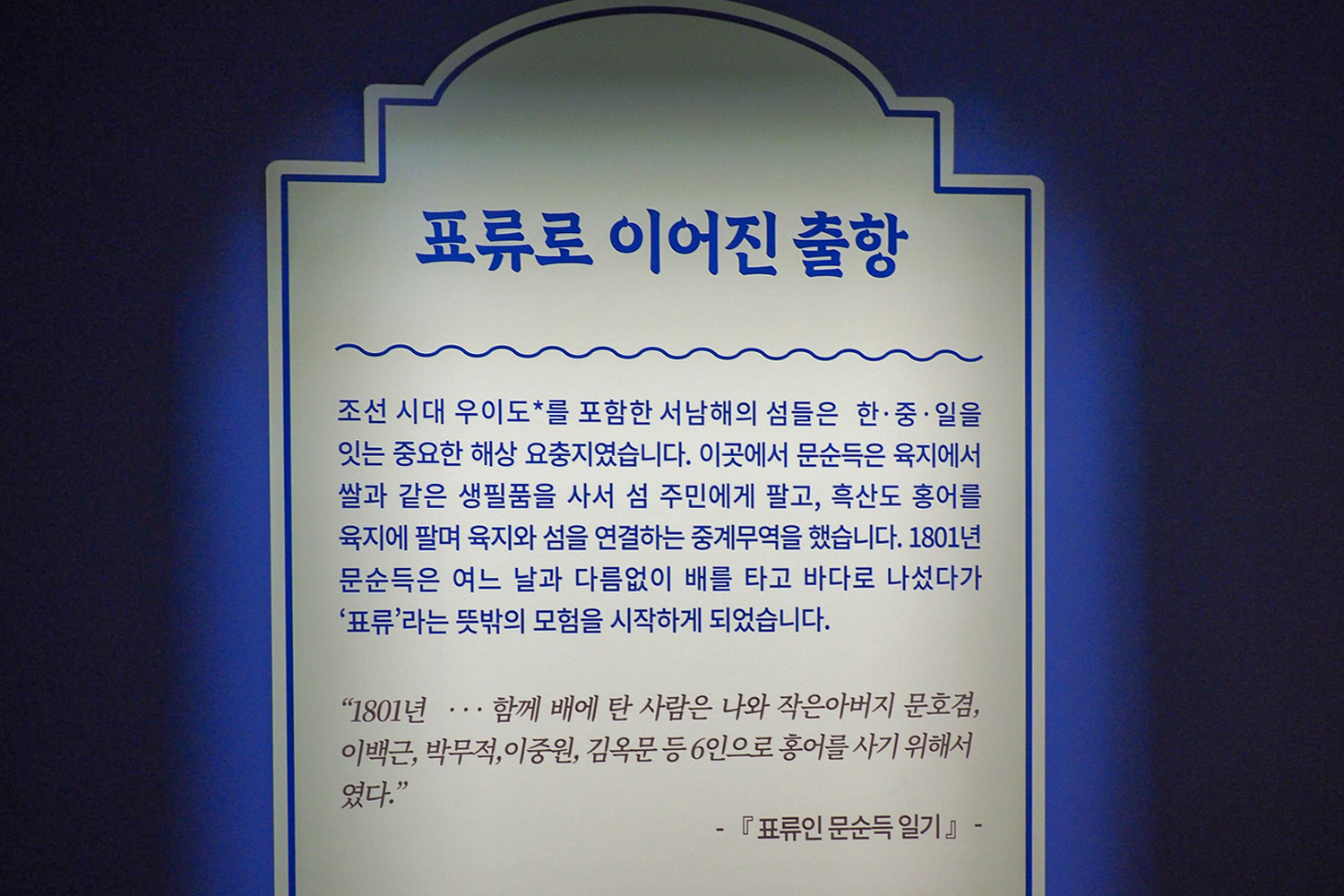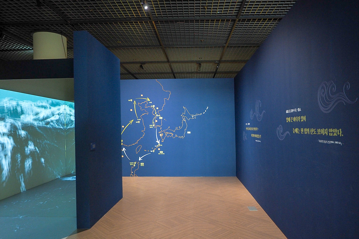 김명진 해수부 해양정책관은 “이번 전시는 한자 고문서로 접근이 어려웠던 표류기를 인공지능(AI)을 통해 생생한 이야기로 체험할 수 있다는 점에서 매우 특별하다”라며 “이번 전시가 우리나라 해양문화유산의 우수성을 알리고 국민들의 관심을 높이는 계기가 되기를 기대한다”라고 말했다. - 안내문