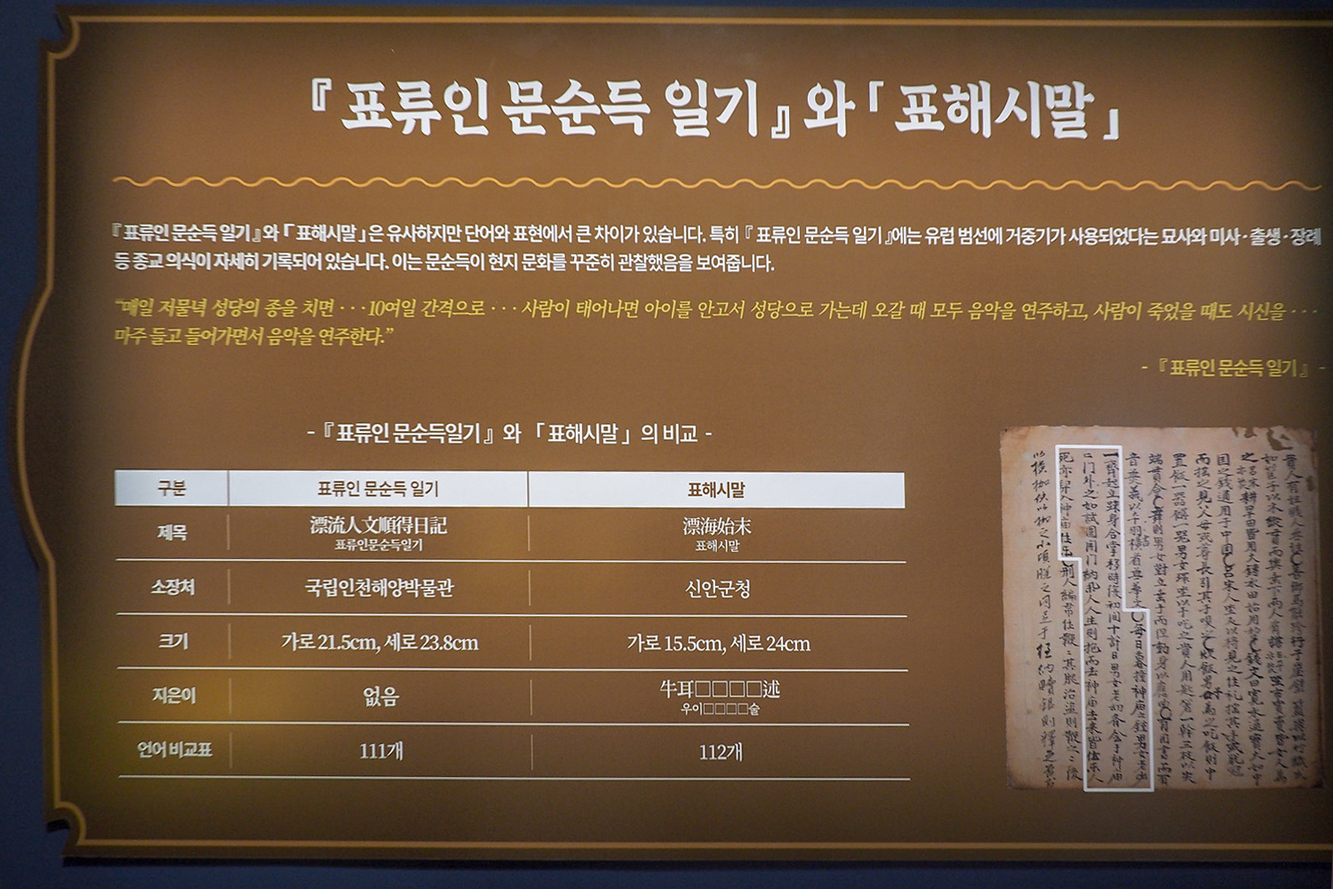 문순득은 조선 후기 홍어 장수로, 1801년 출항 후 폭풍을 만나 일본 오키나와, 필리핀, 마카오 등을 거쳐 3년 2개월 만에 조선으로 귀환했다. ‘표류인 문순득 일기’는 조선 후기의 최장 거리·최장 기간 표류 사례를 기록한 것으로, 당시 동아시아의 문화·경제·외교 실상을 구체적으로 볼 수 있는 귀중한 해양문화유산이다.