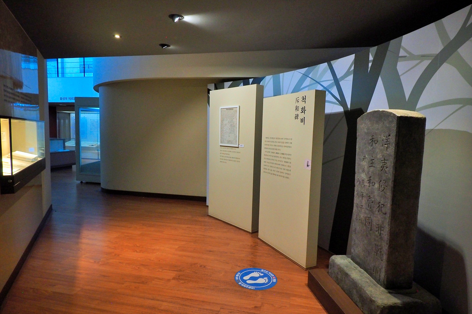 전시홀로 내려가면 1871년도 규장각 지도를 참고해 만든 홍주성복원모형도가 있어 당시 홍주의 모습을 볼 수 있다. 또한 홍성은 한국에서 가장 많은 인물을 배출한 고장답게 최영, 성삼문, 김복한, 이설, 한용운, 김좌진 등에 대해 소개했다. 홍성의 위인들 옆으로 '홍주와 부보상'이라는 주제 하에 부보상 유품들이 진열했고, 주막을 형상화한 공간에서 문창호에 비친 그림자들의 대화를 통해 당시의 시대상을 은유적으로 표현하여 불교, 동학, 천주교의 유입을 자연스럽게 표현했다. 마지막으로 홍주의병과 홍성의 독립운동 등을 구성하여 조선말에서부터 일제강점기까지의 홍성인들의 나라사랑의 정신을 느낄 수 있게 했다. 에필로그로 '내포의 중심으로 도약'이라는 주제로, 유명한 학자인 지봉 이수광 선생이 홍주목사로 재직하던 시절에 지은 시를 영상으로 소개된다. - 안내문