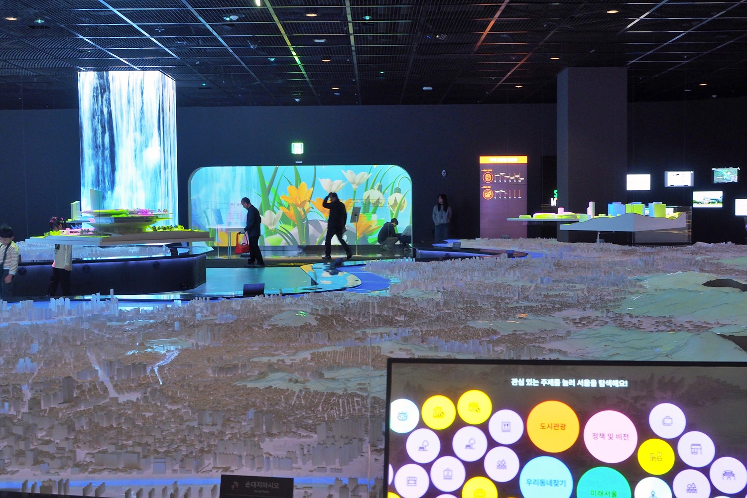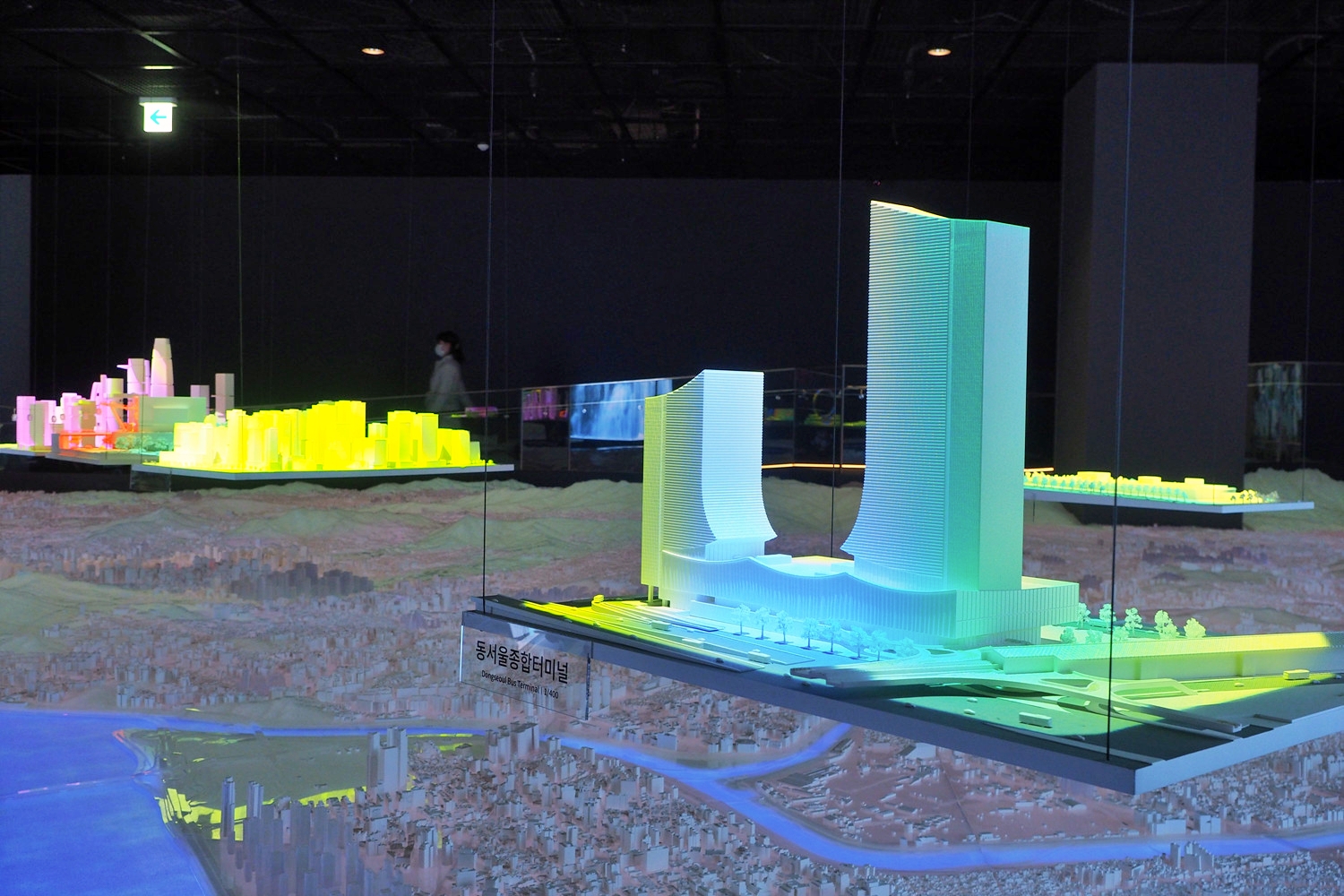 전시관 내부에는 1600:1 스케일로 축소된 서울시 전체 지도 모형 위에 시가 역점사업으로 추진 중인 주요 사업지의 세부 모형이 세워져 있어 서울의 미래 도시상을 한눈에 조망해 볼 수 있다.