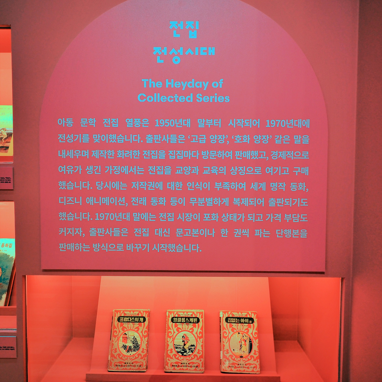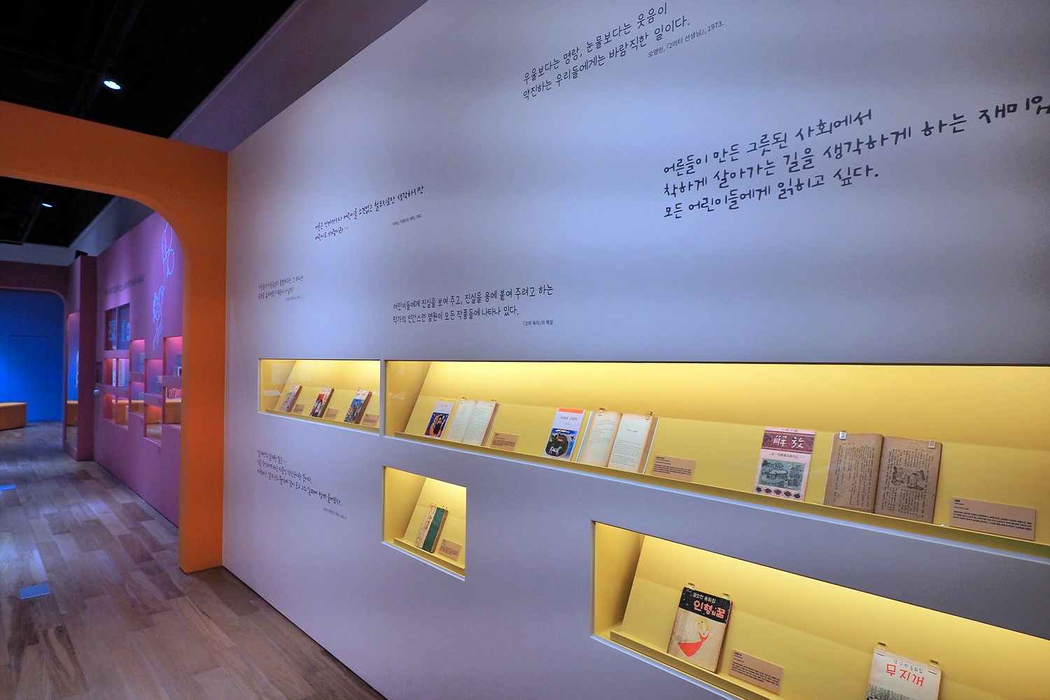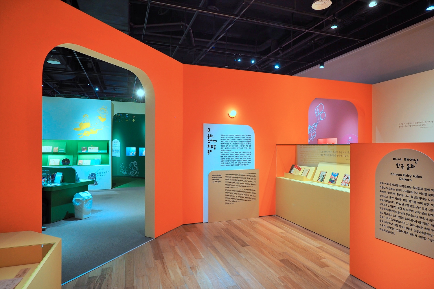 3부 <동화, 상처와 희망을 품다>와 4부 <동화, 빛깔을 입다>는 광복과 전쟁, 산업화를 거치며 동화가 어떻게 시대의 아픔을 위로하고 대중화되었는지 보여준다. 1960년대 조흔파의 『얄개전』 등 명랑소설부터 1970~80년대 필독서였던 『계몽사 세계소년소녀문학전집』, 어른을 위한 동화로 지평을 넓힌 정채봉의 『오세암』 등을 통해 관람객들의 향수를 자극한다. 마지막,