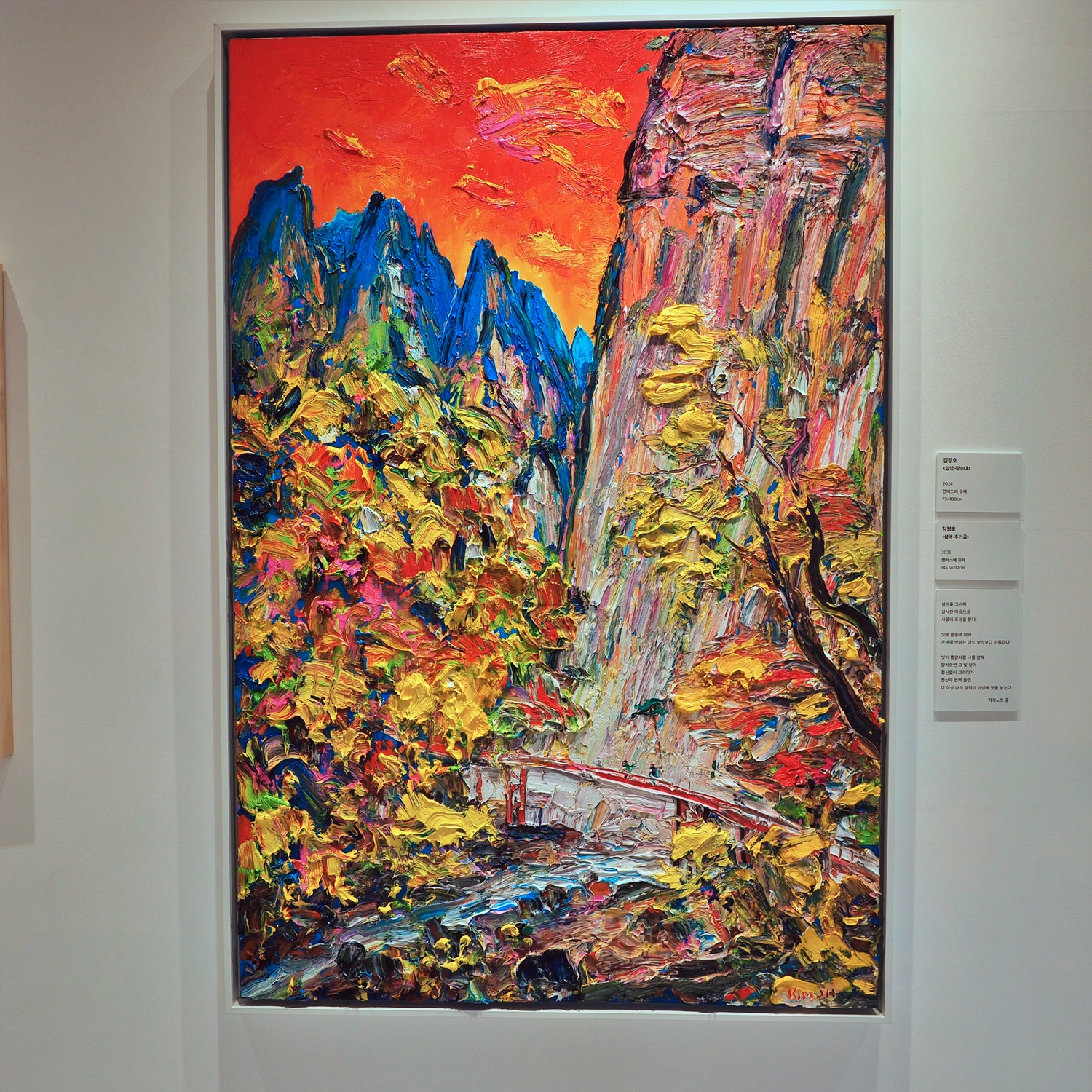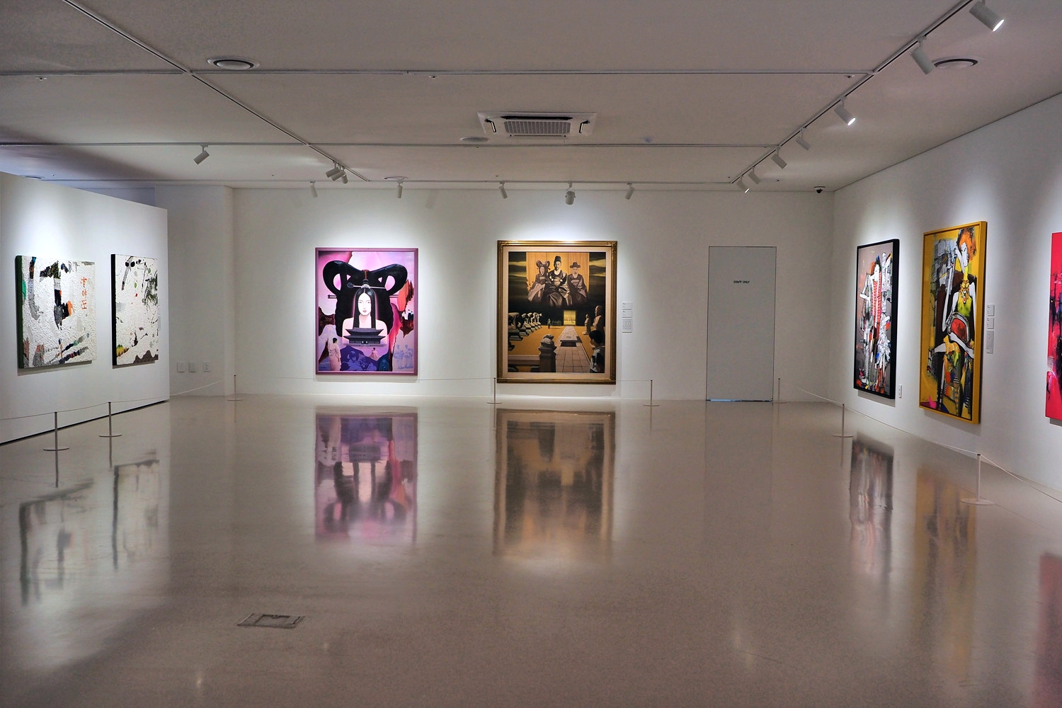 전시는 대형 회화 작품을 중심으로 구성됐다. 현대적인 선과 색의 역동성이 돋보이는 작품부터 화려하고 세련된 감각, 상상력을 자극하는 작품까지 다양한 양식의 회화의 작품을 한자리에서 감상할 수 있어 관람객들에게 깊은 울림을 선사할 것으로 구는 기대했다. - 안내문
