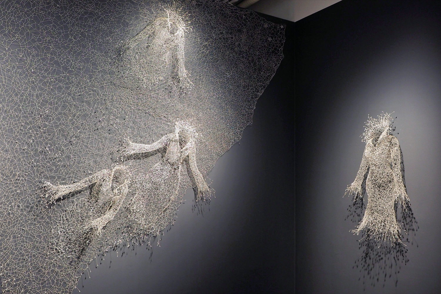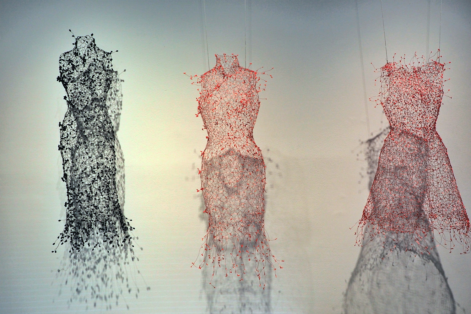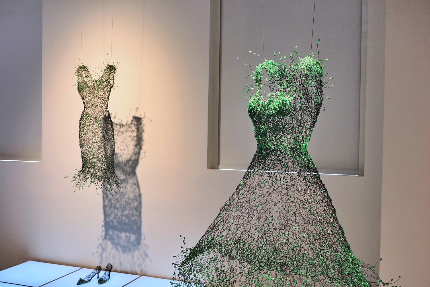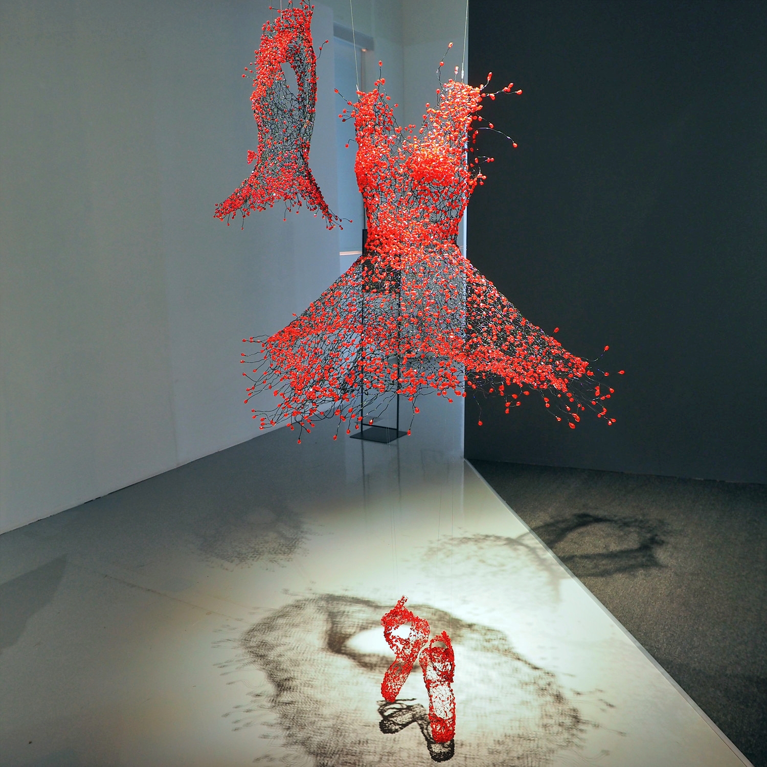 Dreaming, Dancing, Enlightening 세 개의 키워드를 따라 전시장을 걷다 보면, 입는 예술이 몸을 넘어 공간과 환경, 관계의 의미로 확장되는 과정을 자연스럽게 경험하게 된다. 철사로 만든 빈 드레스가 벽과 공간으로 이어지며 조형 언어가 되는 장면은 특히 인상 깊었다.