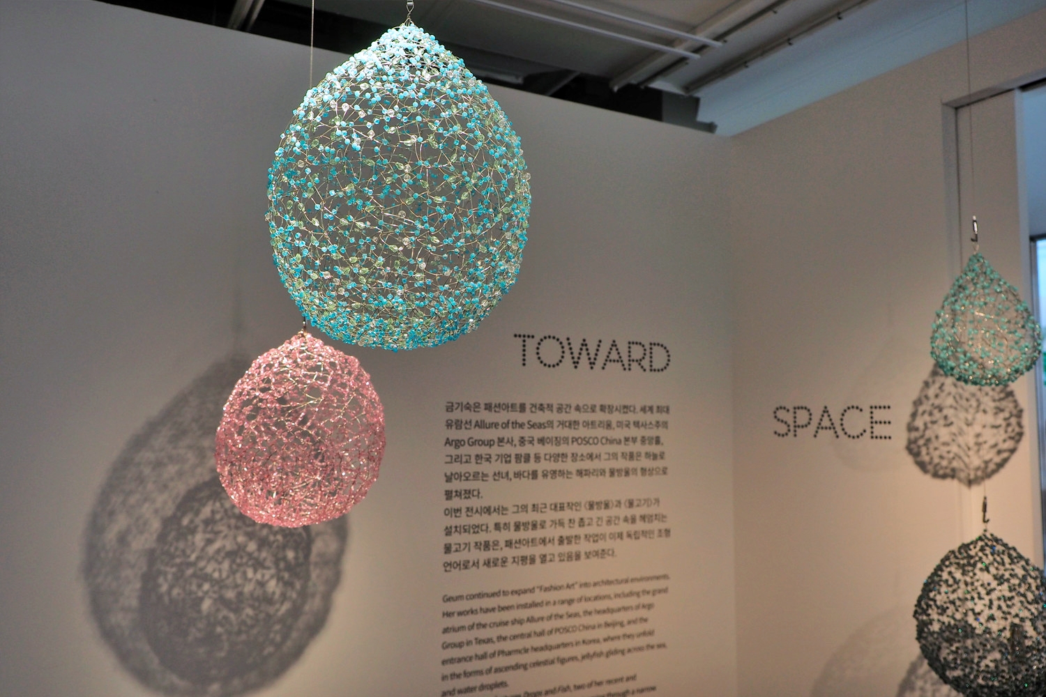 작품을 가까이에서 들여다보면 또 다른 놀라움이 기다리고 있다. 화려해 보이는 드레스와 조형물의 재료가 철사, 구슬, 노방, 스팽글, 심지어 빨대와 은박지 같은 재활용 소재라는 점이다. “이게 빨대로 만든 작품이라고?”라는 반응이 여기저기서 들렸다. 버려진 재료들이 작가의 손을 거쳐 빛과 선이 살아 있는 예술 작품으로 재탄생한 순간이었다.