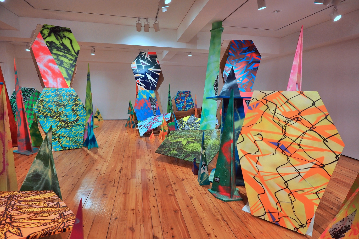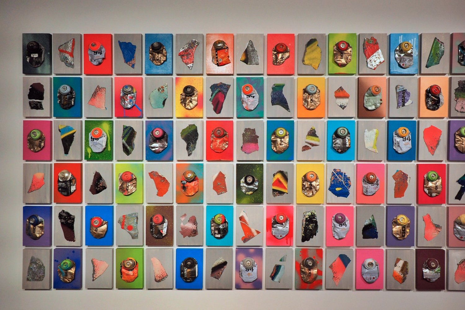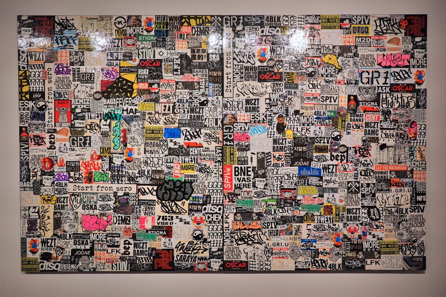 나아가 그래피티 부산물을 작업으로 전환한 〈Defrag–Walls, Cans〉, 거리 곳곳에 붙어 있던 태깅 스티커 수백 점을 수집하여 캔버스 위에 부착한 작업 〈Defrag–Stickers〉은 지알원의 광적인 수집가적 면모가 직접적으로 드러나는 작업들이다.